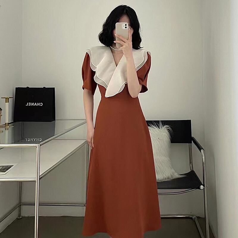 サマースタンダードドレス ウェスト薄手カラーロングスカート レトロ 夏物 5/3 春夏 SS Neploe mi4651262391062