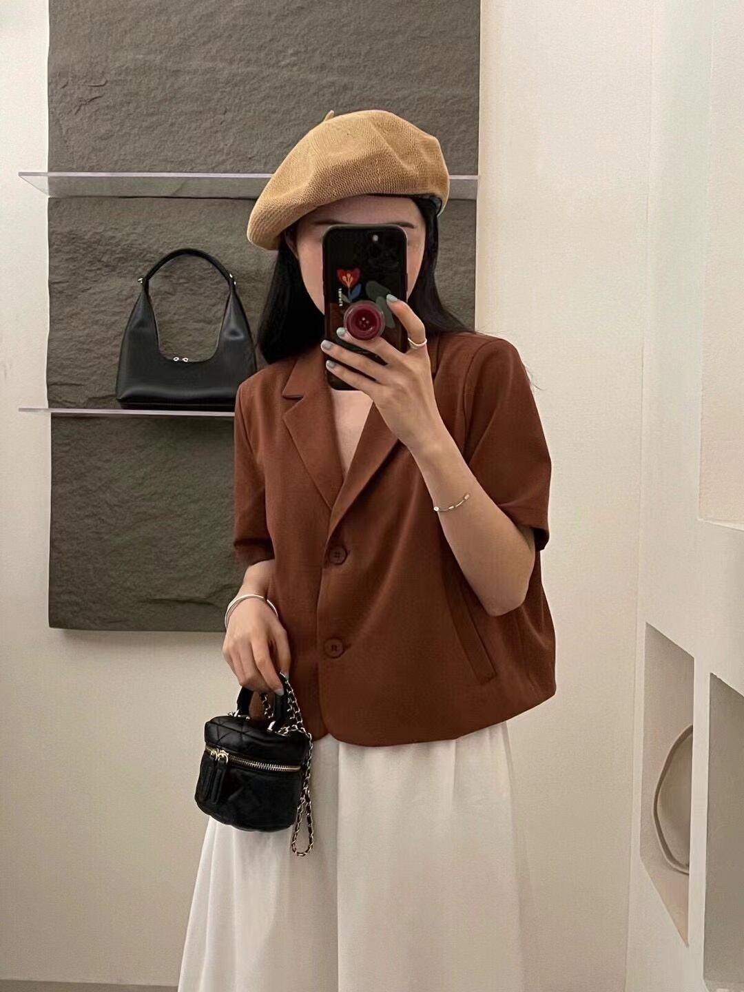 サマースタンダードカラーソリッド ルーズカジュアルショートジャケット レディース レトロ 夏物 ソリッドカラー 5/3 春夏 SS Neploe mi4683533370131