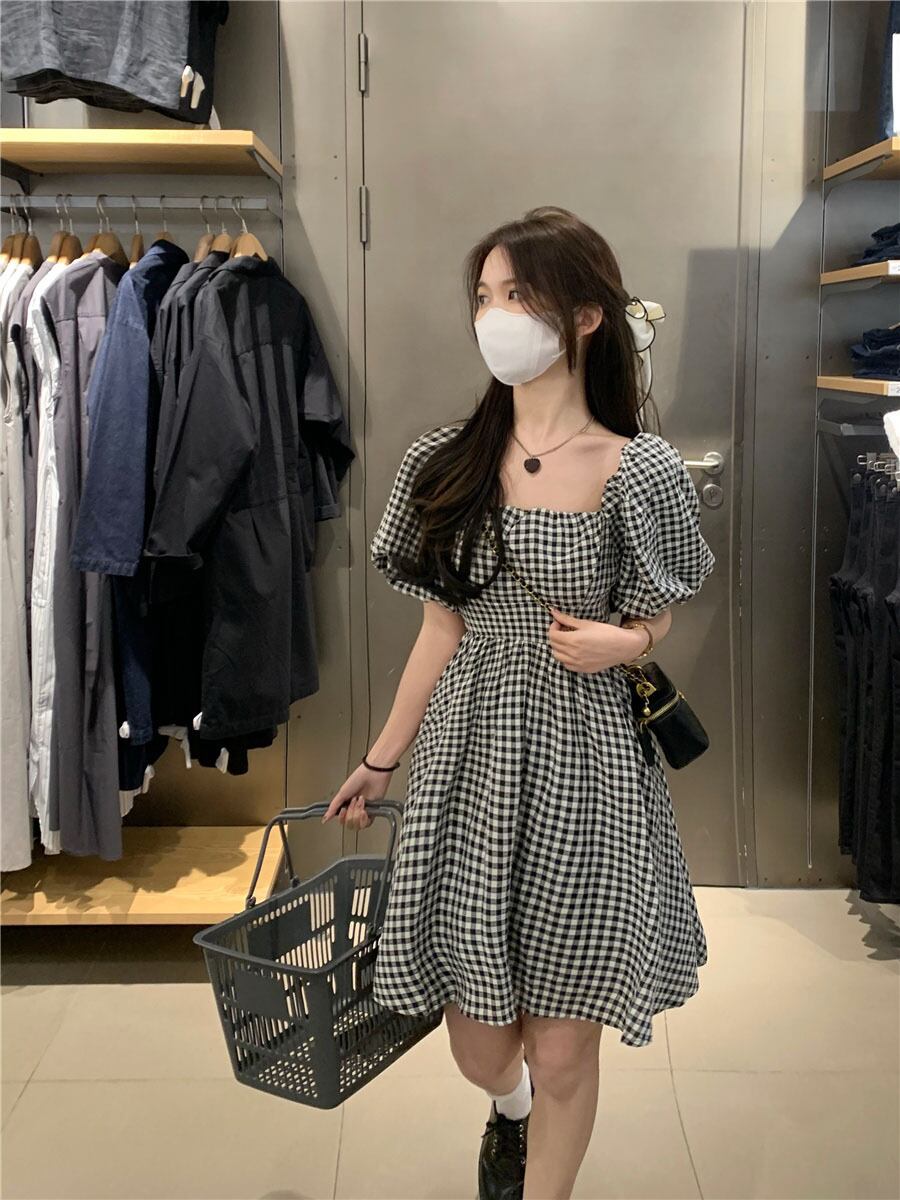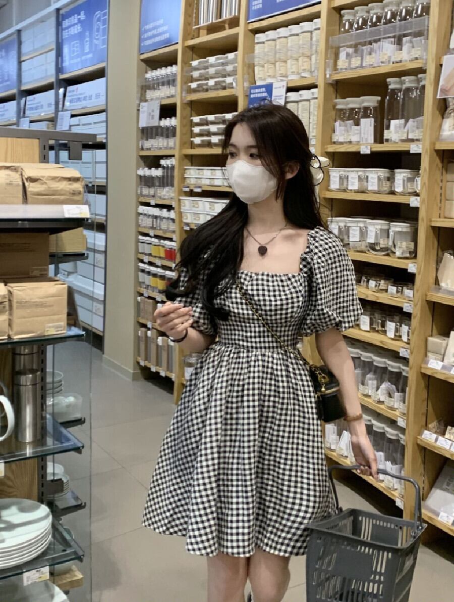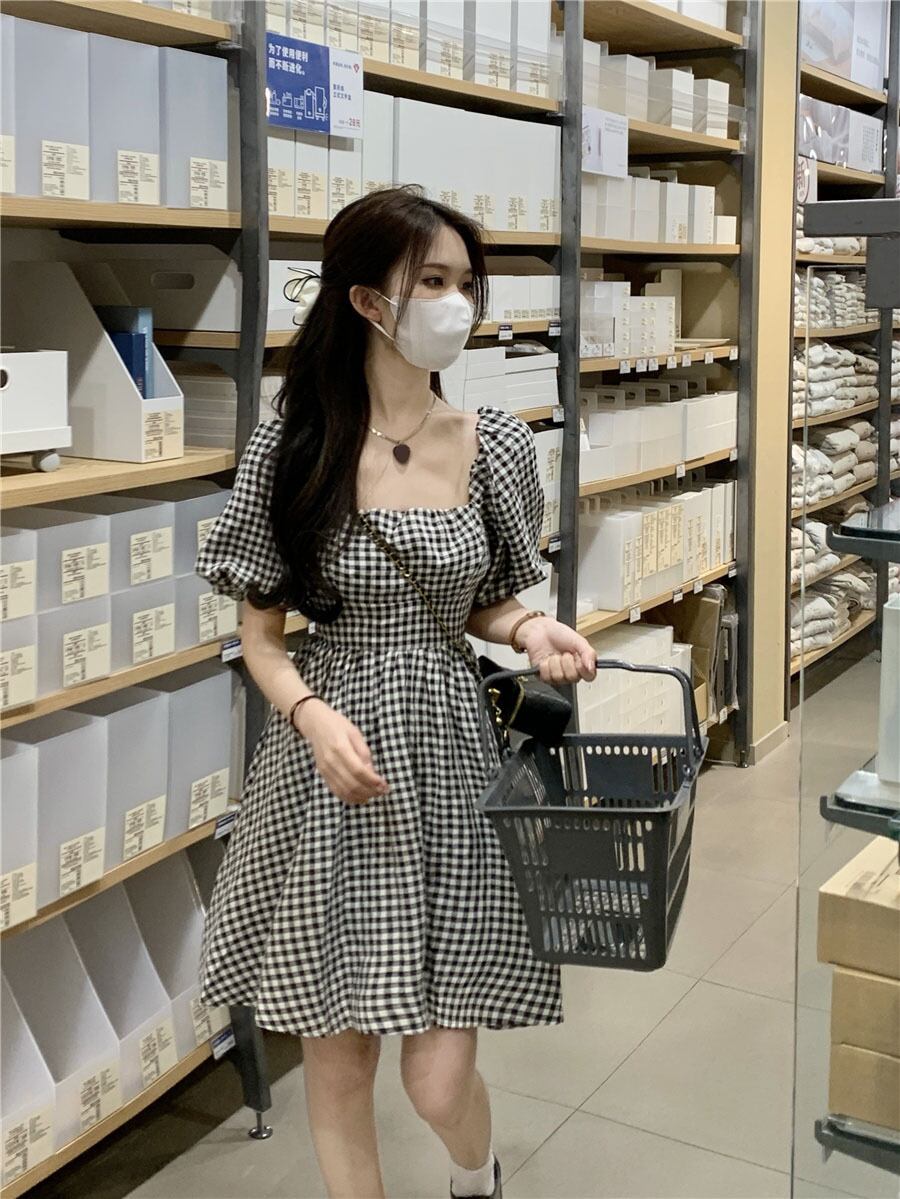 サマースタンダードウェスト薄手格子柄ドレス レトロ 夏物 スクウェア 5/3 春夏 SS Neploe mi4674807489937