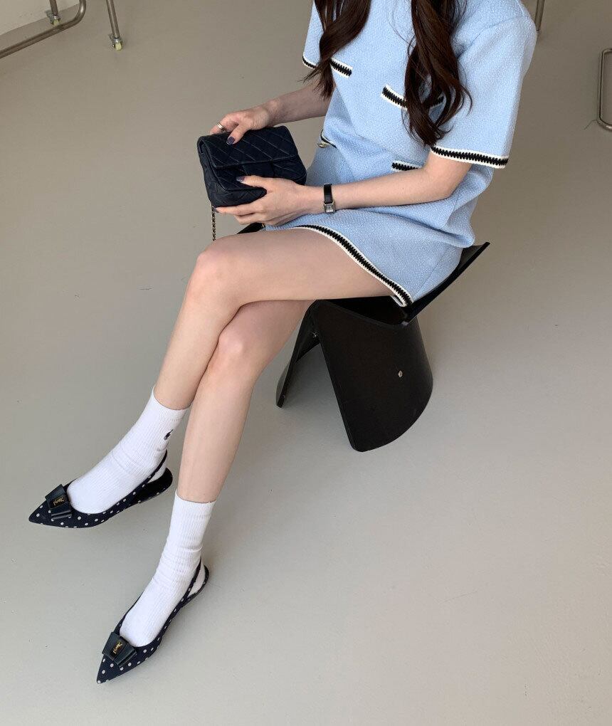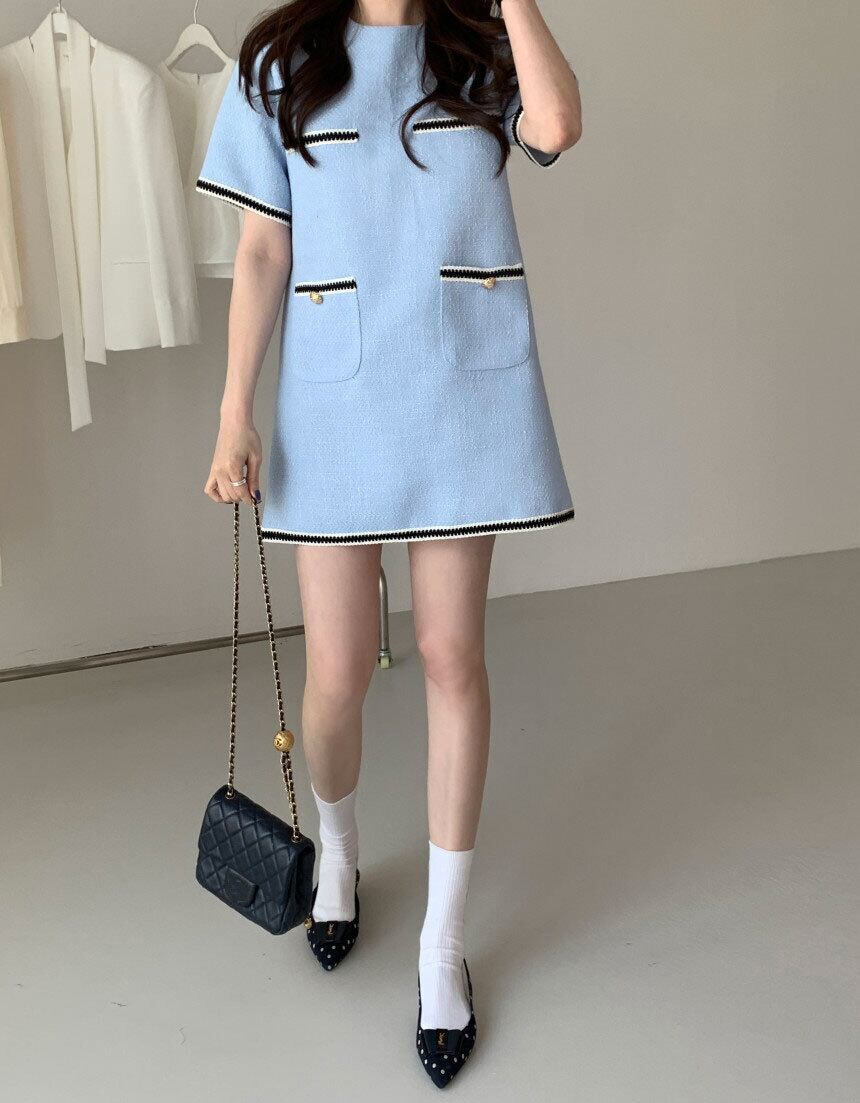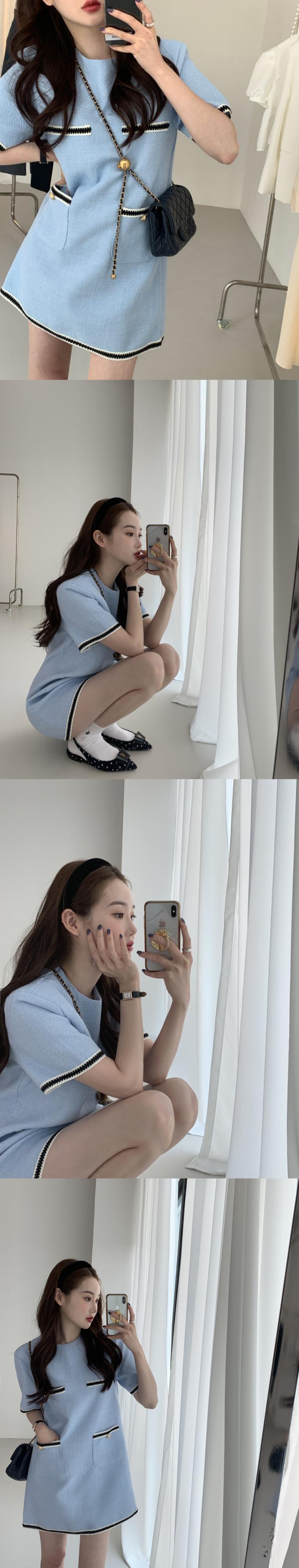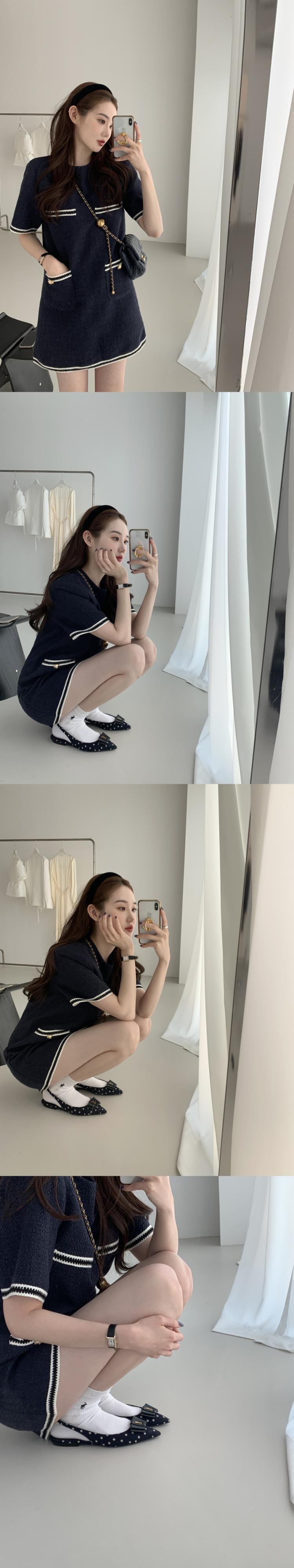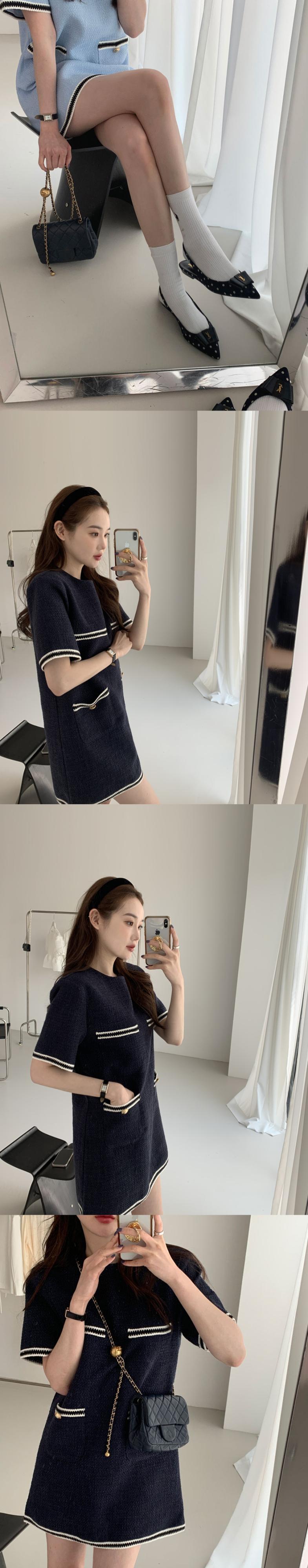 サマーラウンドネックカラーポケットルーズツィードドレス レディース 夏物 Oネック 5/3 春夏 SS Neploe mi4696101157995