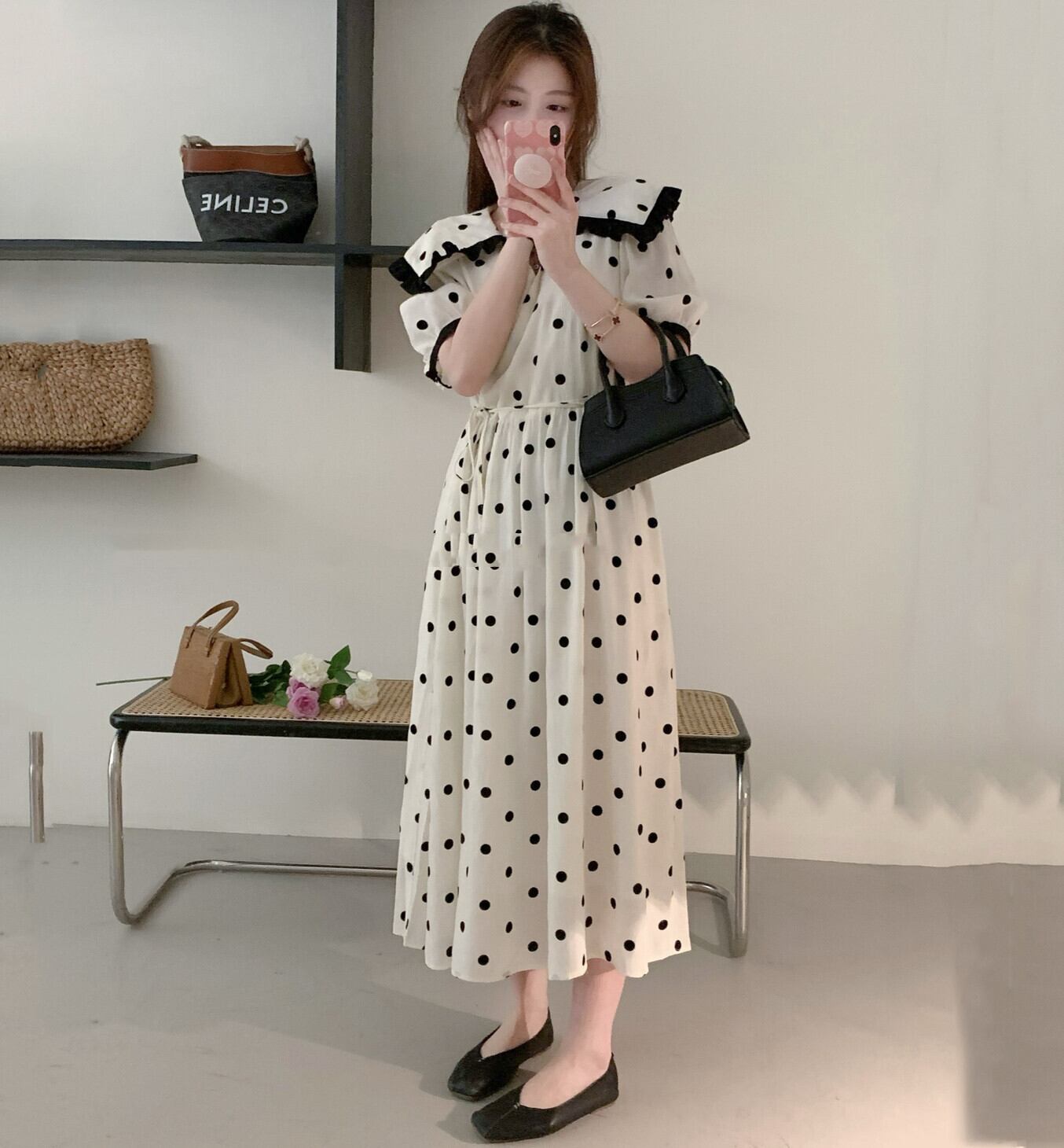 サマーウェスト水玉ドレス ロングスカート エレガント 夏物 5/3 春夏 SS Neploe mi4677171986407