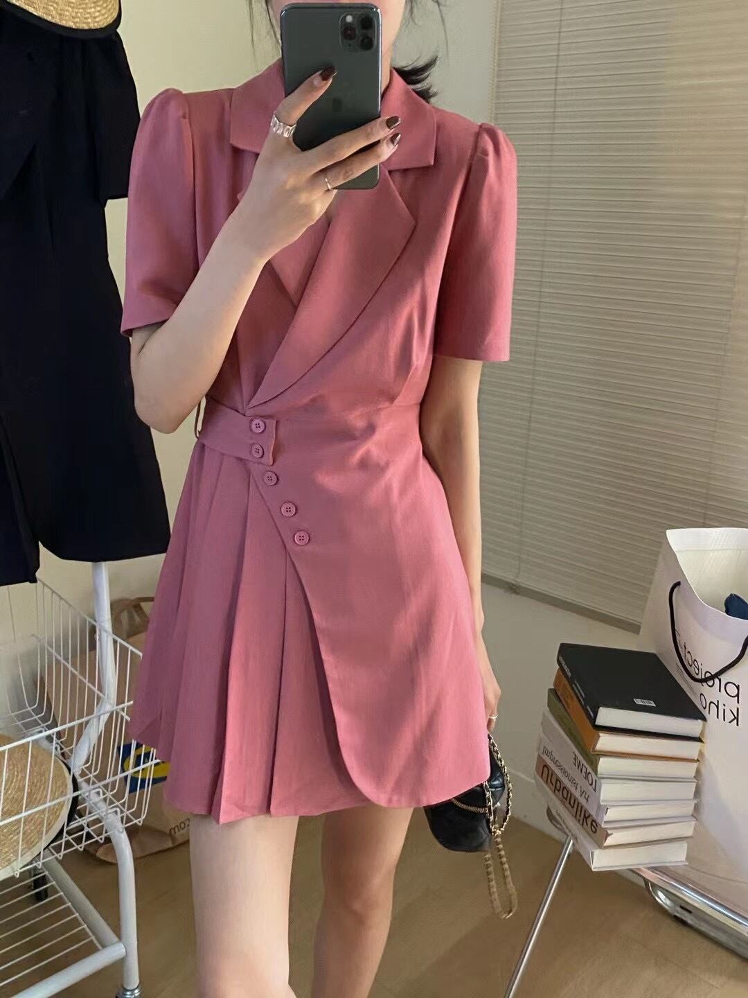 サマーカラーバックルウェストプリーツドレス ショートスカート レディース 夏物 ステッチ 5/3 春夏 SS Neploe mi4679477745227