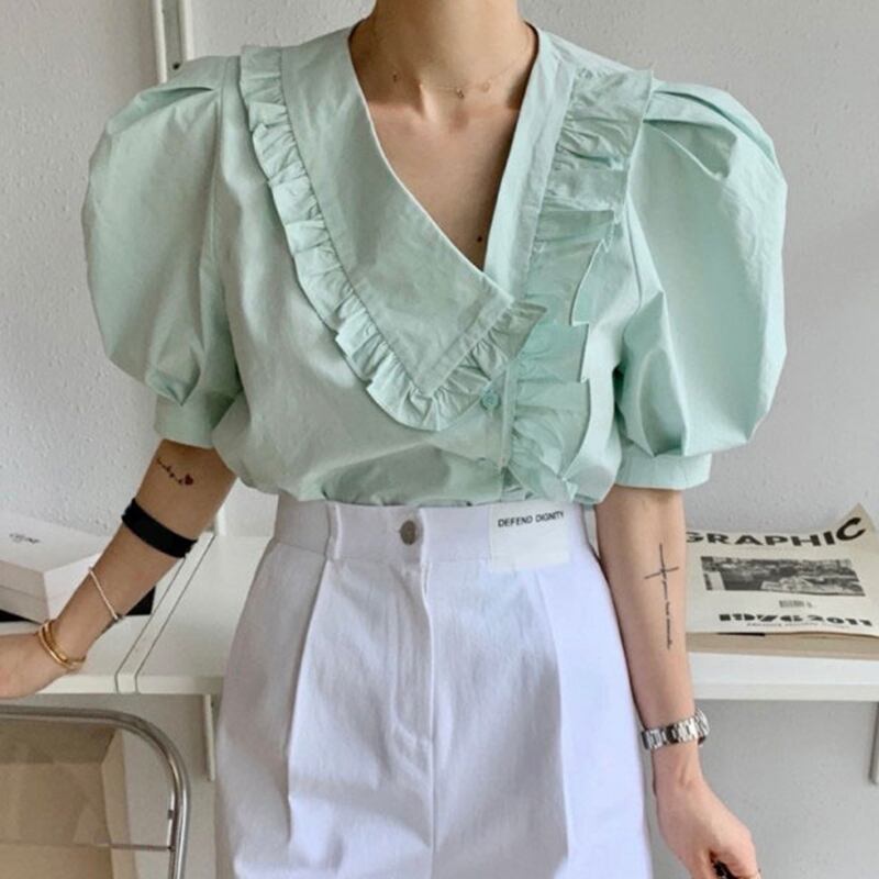 サマーグリーンカラールーズシャツ トップス レディース 夏物 ステッチ 5/3 春夏 SS Neploe mi4655992539037