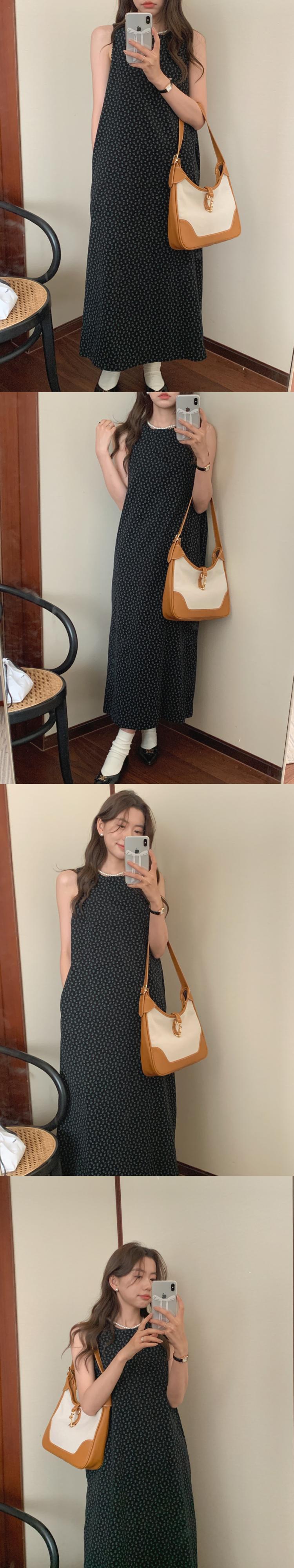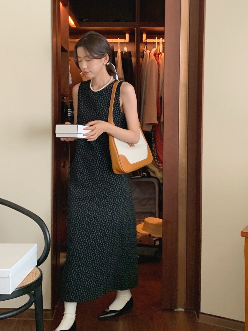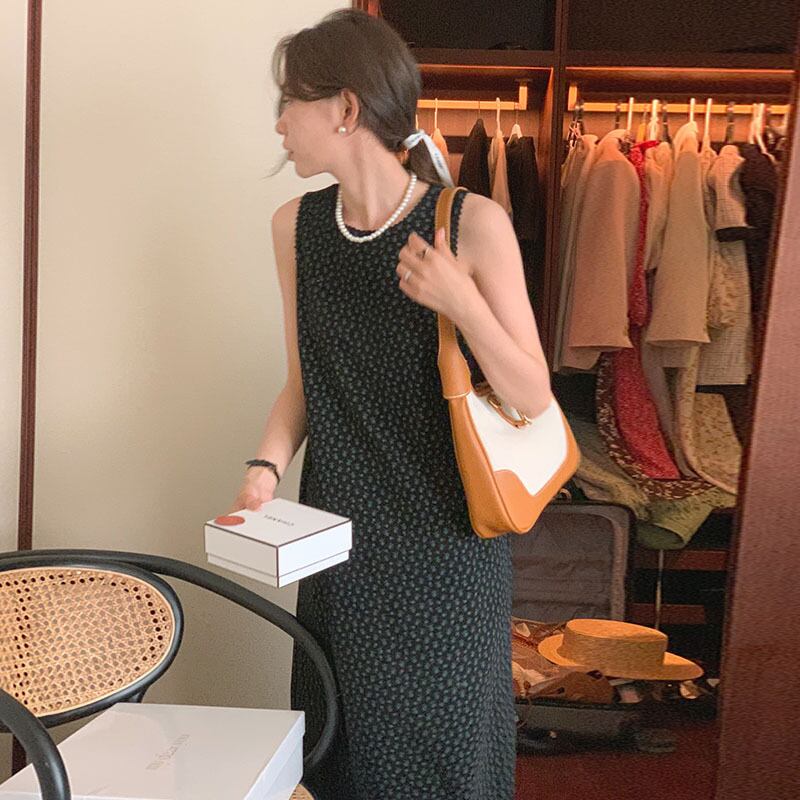 サマースタンダードラウンドネックノースリーブフローラルドレス ロングスカート レトロ 夏物 花柄 Oネック 5/3 春夏 SS Neploe mi4663458251707