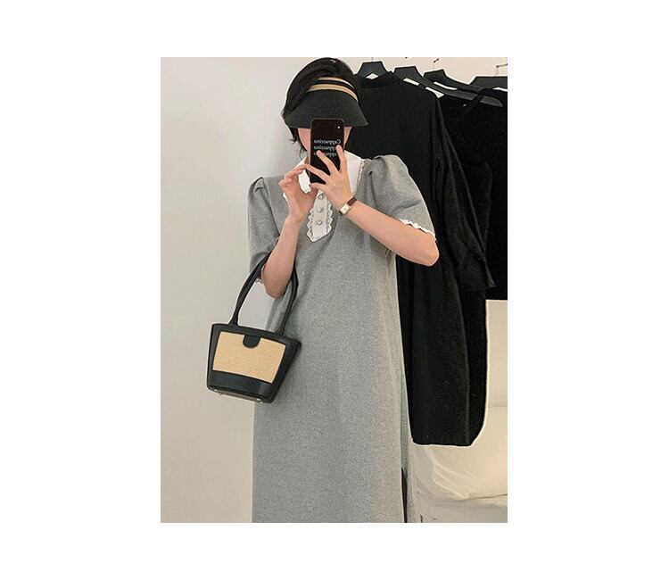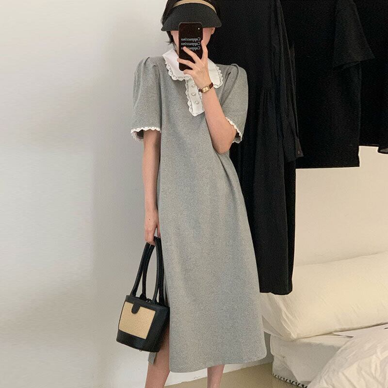 サマースタンダードカラーレースサイドスリットスリーブドレス レトロ 夏物 ステッチ 5/3 春夏 SS Neploe mi4666762597405
