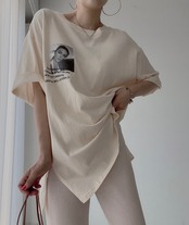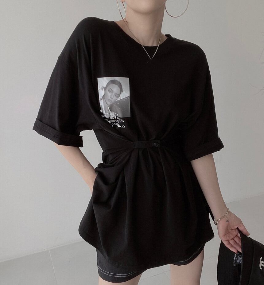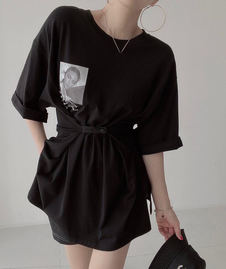 サマーラウンドネックボタンウェストパターンプリントTシャツ レディース 夏物 Oネック 5/3 春夏 SS Neploe mi4692439248537