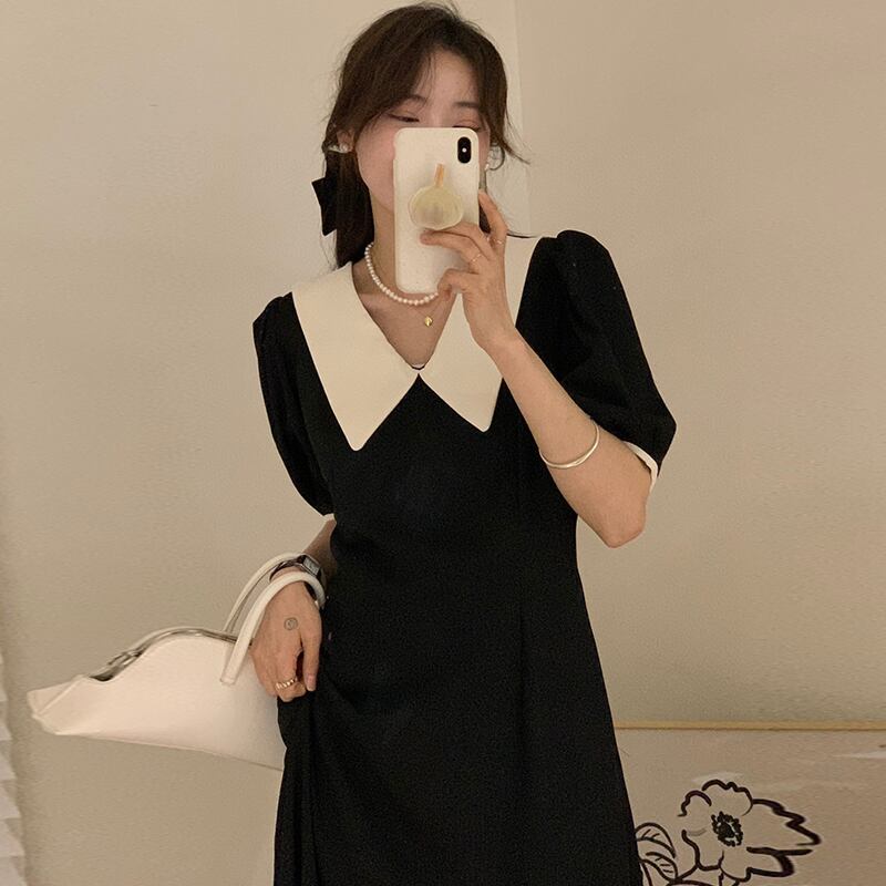 サマーカラープリーツウェストスリーブロングドレス ブラック エレガント 夏物 5/3 春夏 SS Neploe mi4661507633576