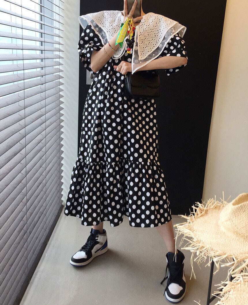 サマースタンダードメッシュレーススリーブ水玉ドレス レトロ 夏物 ステッチ 5/3 春夏 SS Neploe mi4698796608011