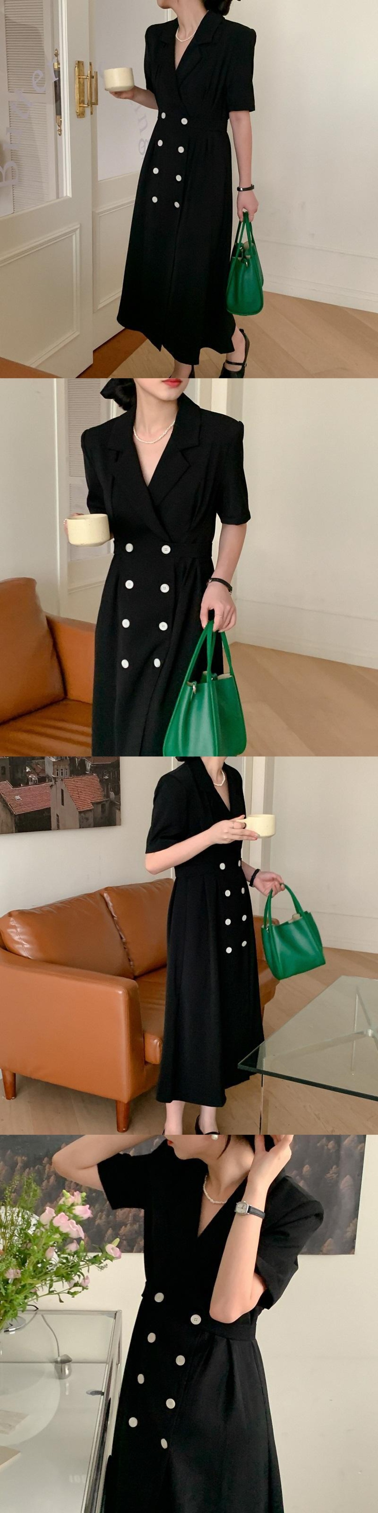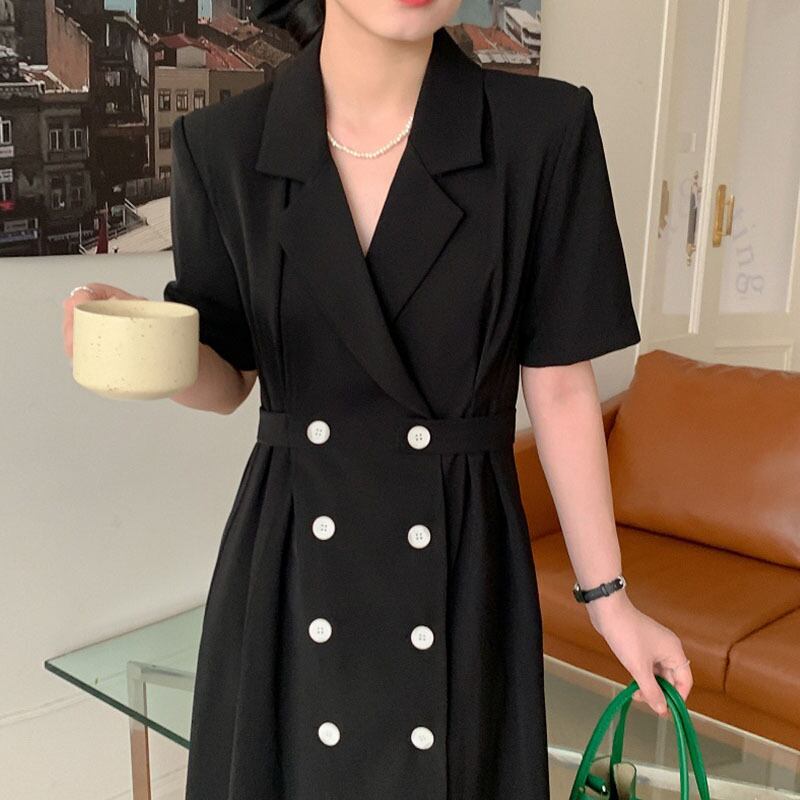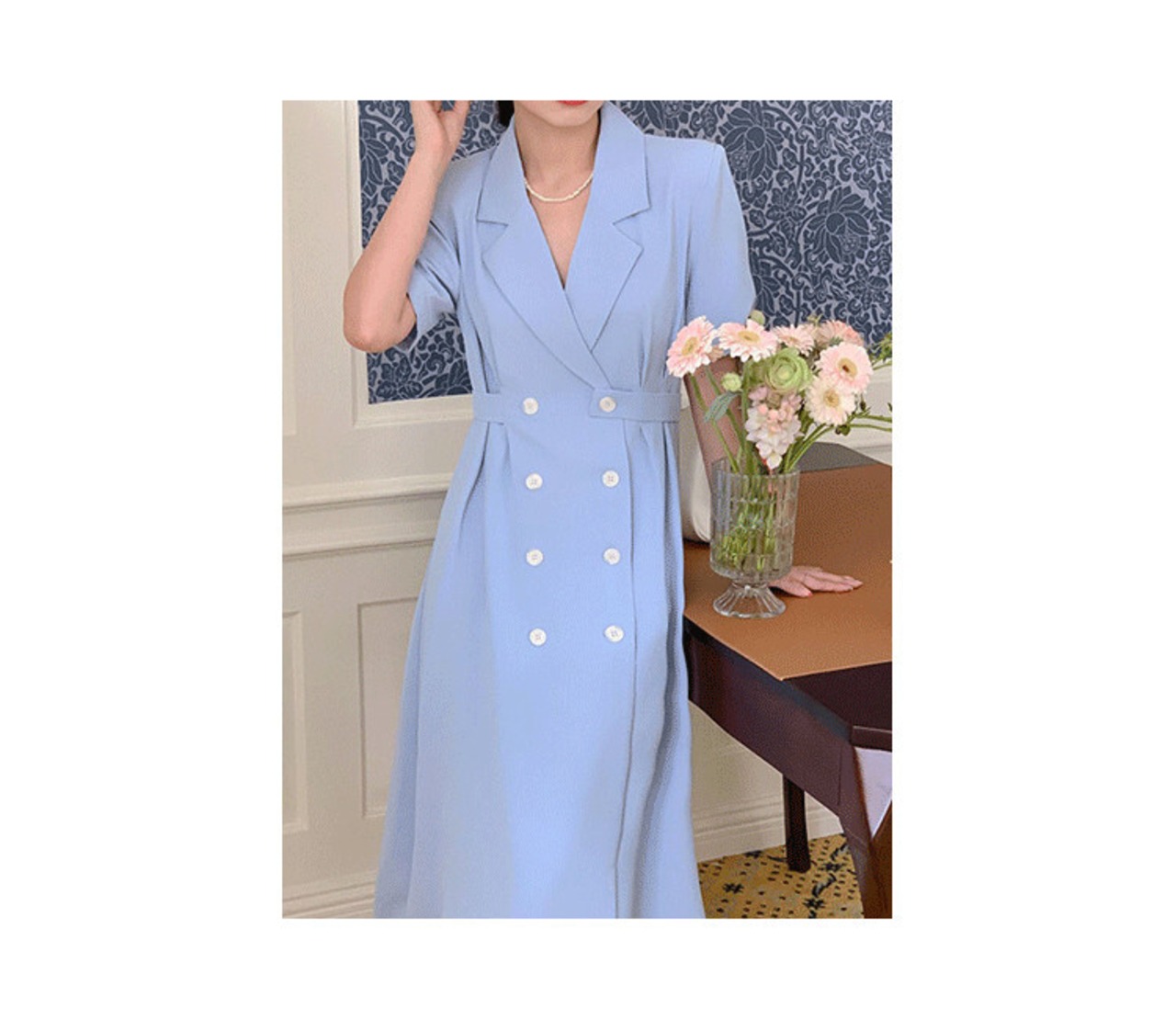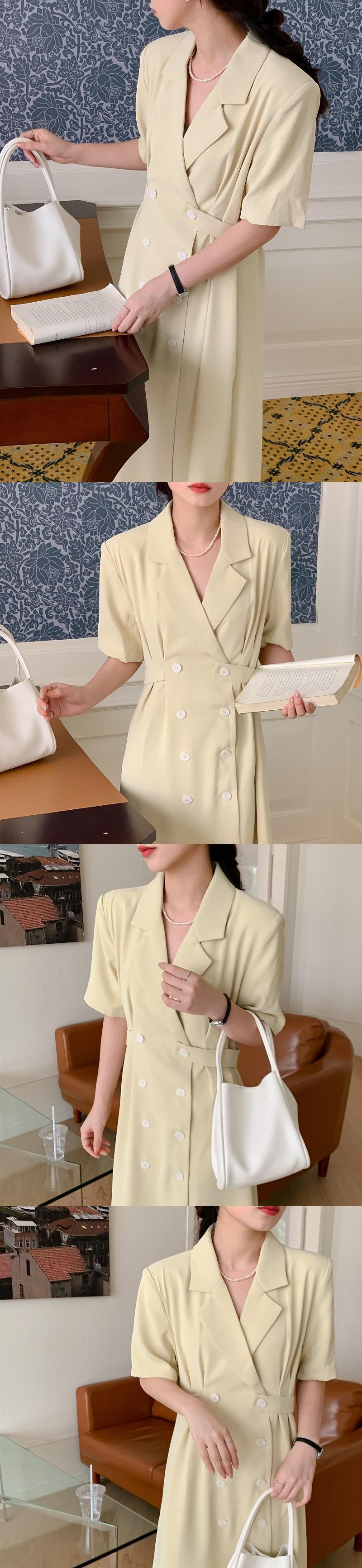 サマーダブルブレストカラーウェストスリムドレス レディース 夏物 5/3 春夏 SS Neploe mi4669780041519