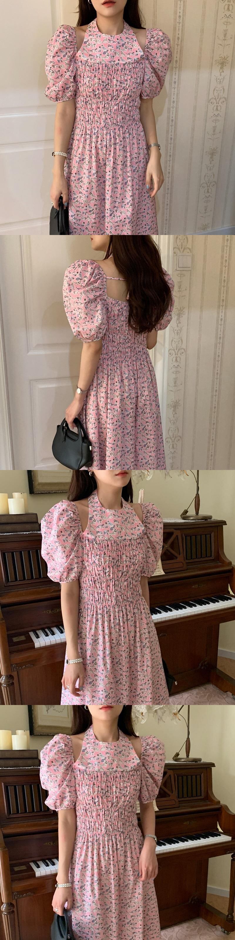 サマースタイルラウンドネックウェストスリーブプリント柄ドレス 夏物 Oネック 5/3 春夏 SS Neploe mi4664033496676