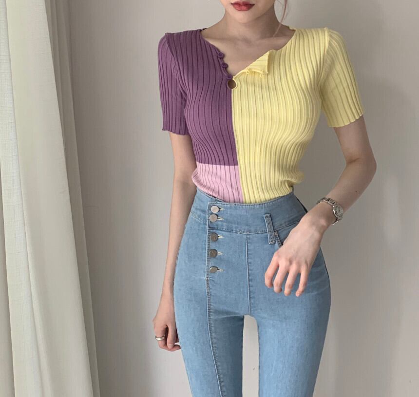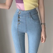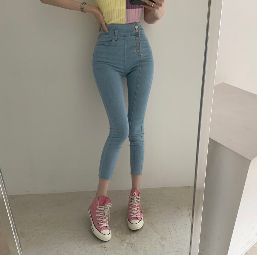 スタンダードブルーサイドハイウェストウェストスリムジーンズ レディース レトロ 5/3 春夏 SS Neploe mi4669696338200