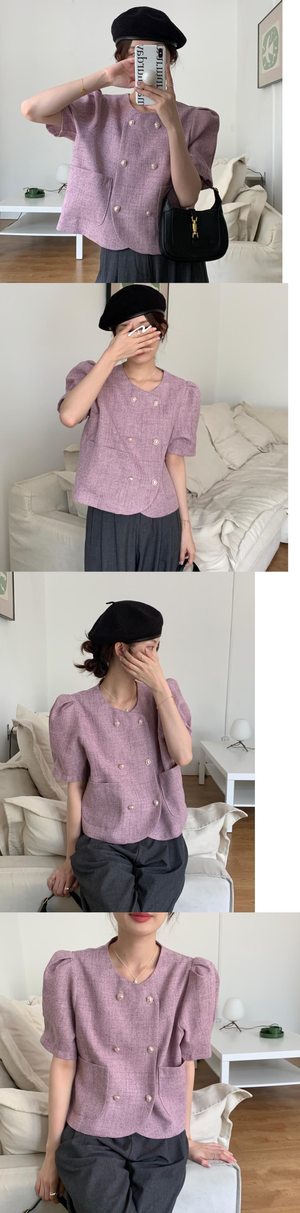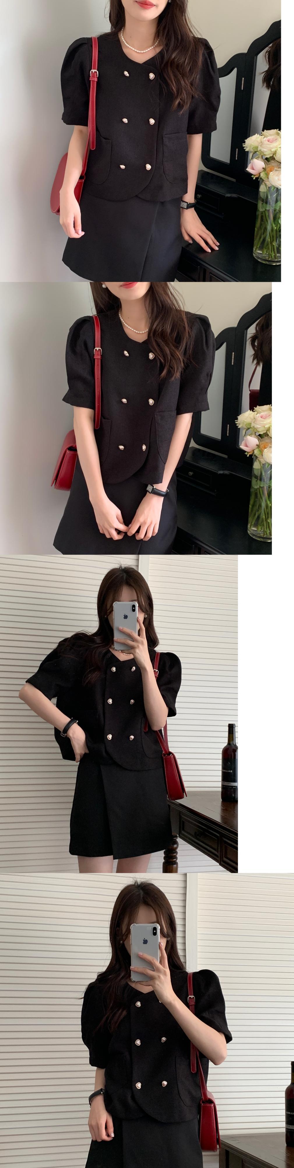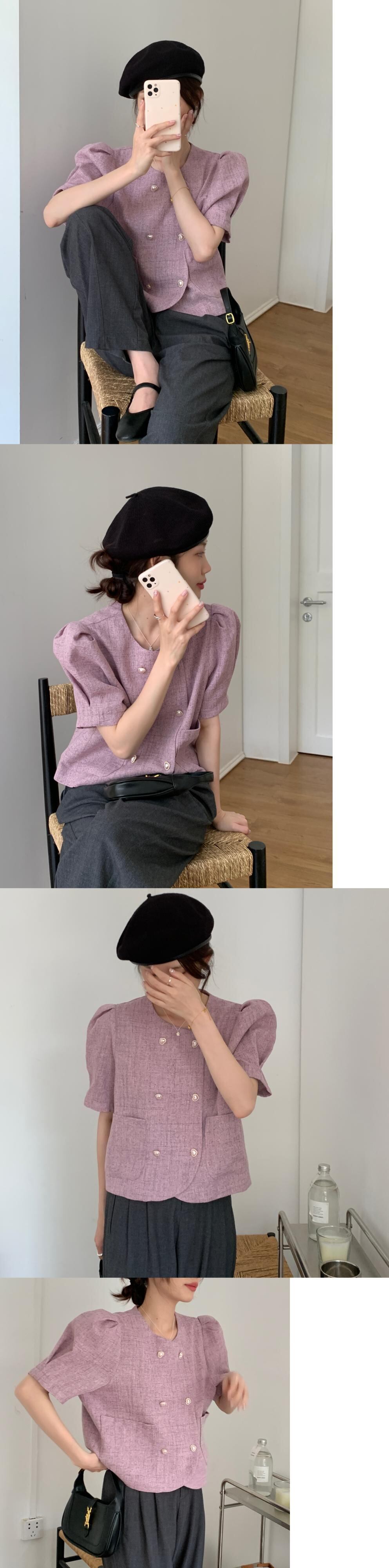 サマースタンダードラウンドネックダブルブレストルーズポケットスリーブショートジャケット レディース レトロ 夏物 Oネック 5/3 春夏 SS Neploe mi4638483816853