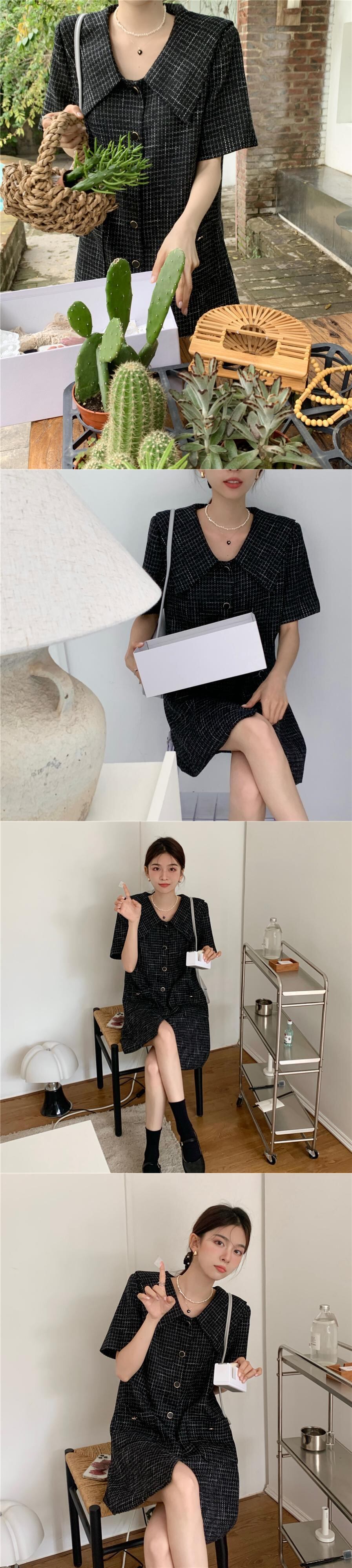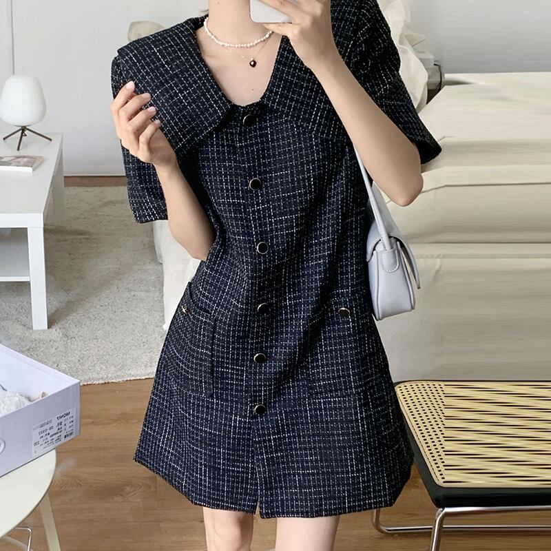 スプリングスタンダード格子柄ポケットルーズドレス レディース レトロ 春物 5/3 春夏 SS Neploe mi4618453852596