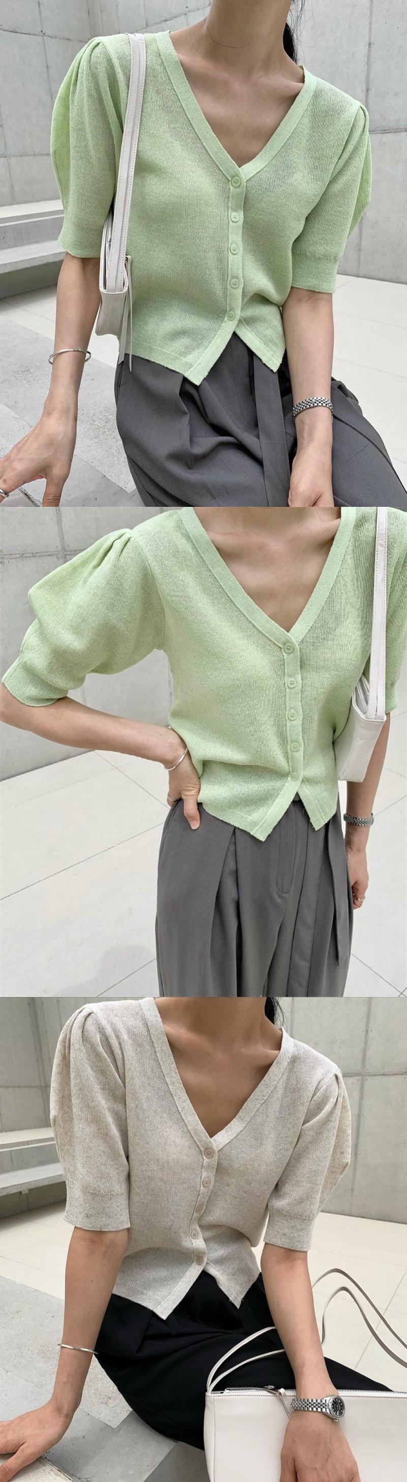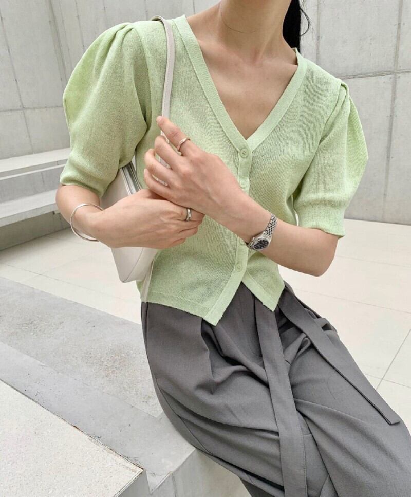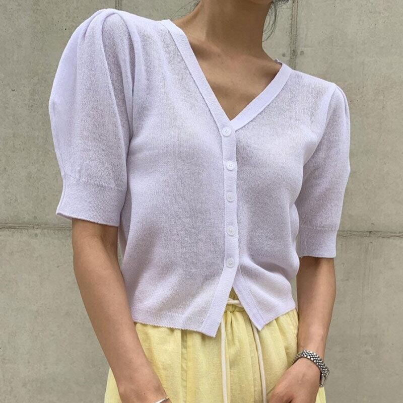 サマーVネックソリッド カラーショートニットカーディガンレディース 夏物 ソリッドカラー 5/3 春夏 SS Neploe mi4615616681583