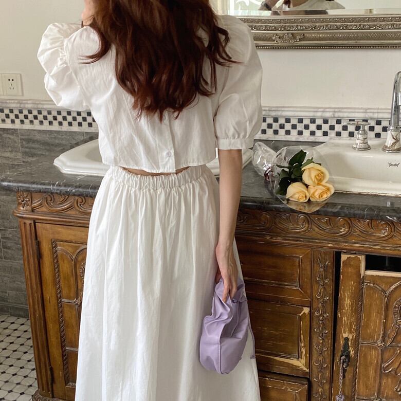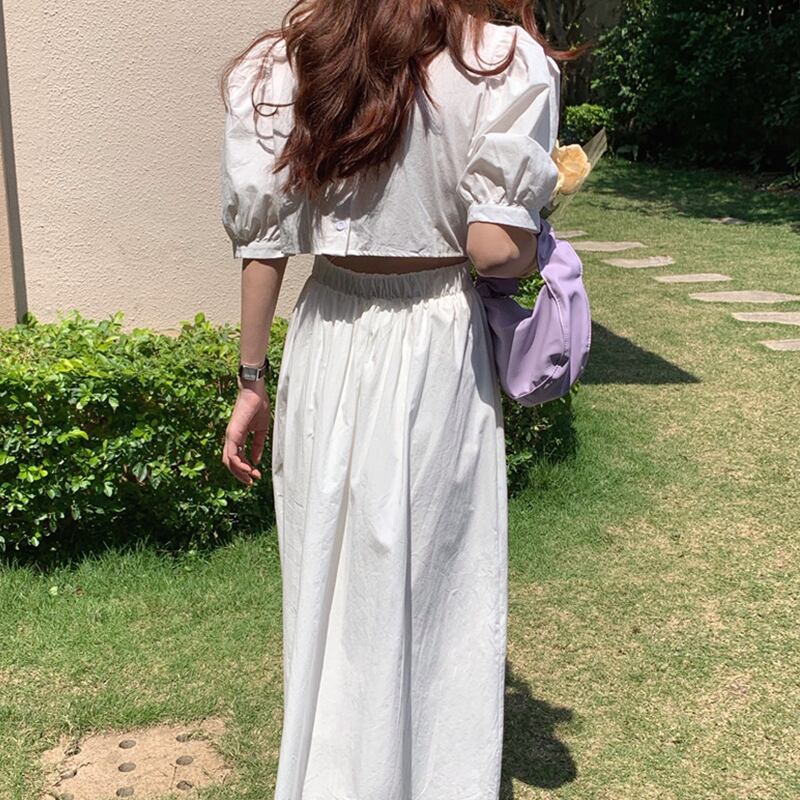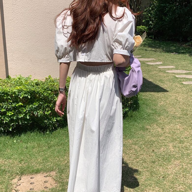 サマースタンダードラウンドネックバックレスウェストスリムスリーブロングドレス レディース レトロ 夏物 Oネック 5/3 春夏 SS Neploe mi466272259622