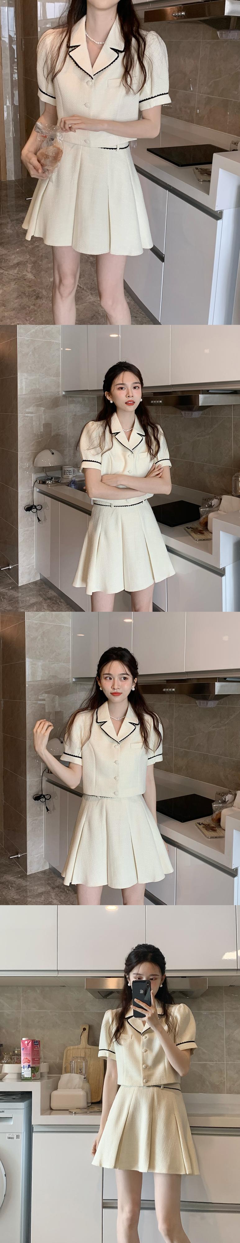 スタンダードカラーショートコート ハイウェストウェストプリーツAラインスカート レディース レトロ 5/3 春夏 SS Neploe mi4691819650334