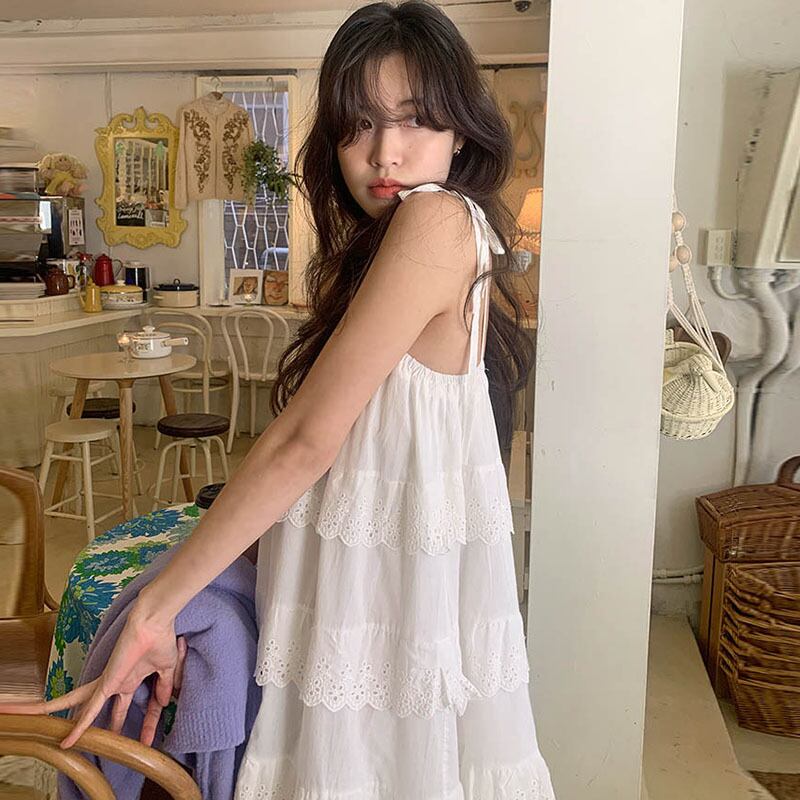 サマーカラーレースロングソリッド スカート レディース レッド 夏物 ソリッドカラー スクウェア ステッチ 5/3 春夏 SS Neploe mi4611435718923