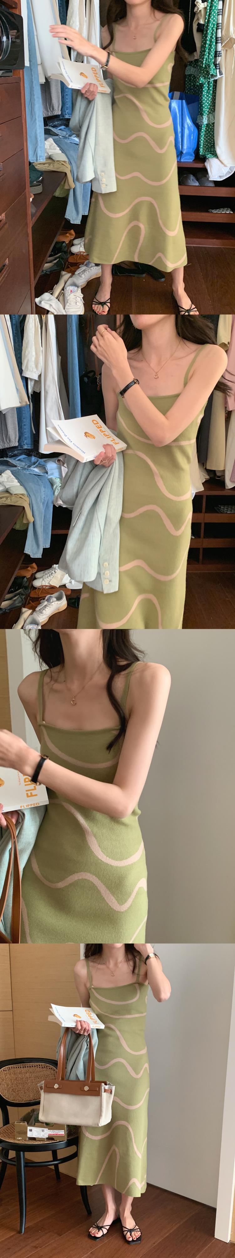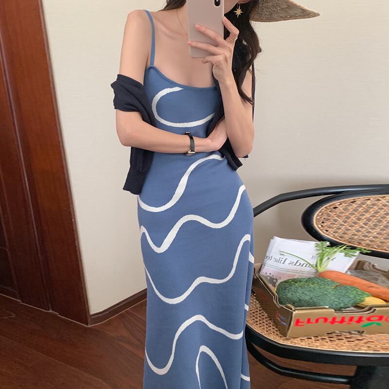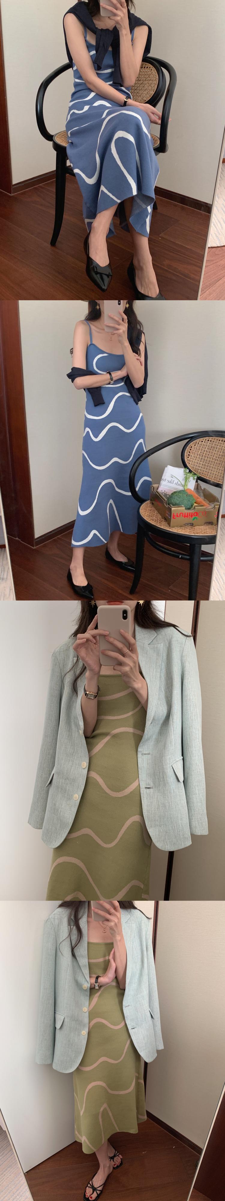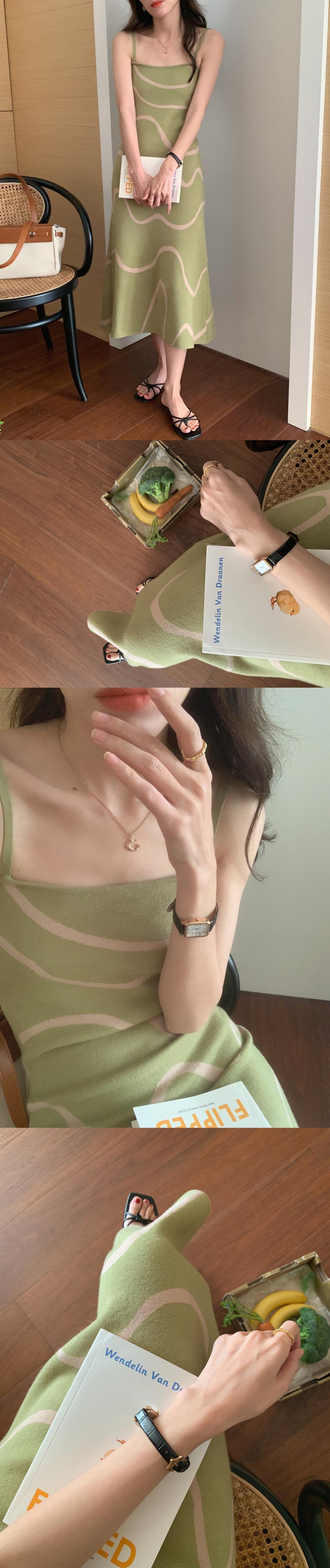サマースタンダードカラーラインジャカードノースリーブニットドレス レトロ 夏物 スクウェア 5/3 春夏 SS Neploe mi4681824079277