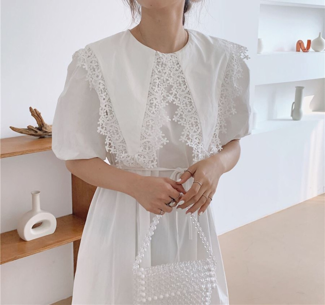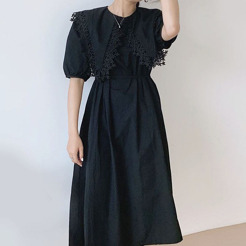 サマーカラーレースウェストスリーブドレス 夏物 ステッチ 5/3 春夏 SS Neploe mi4691304524655