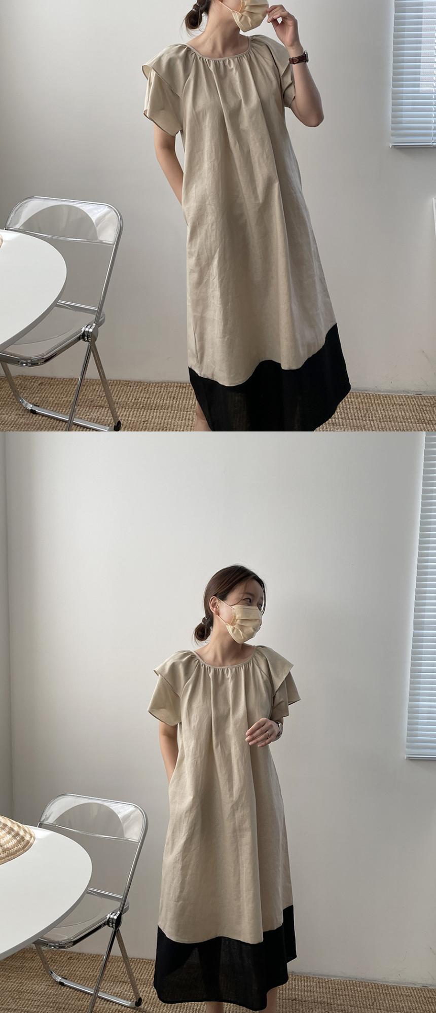 サマーラウンドネックカラールーズカジュアルスリーブドレス 夏物 Oネック ステッチ 5/3 春夏 SS Neploe mi464837027301