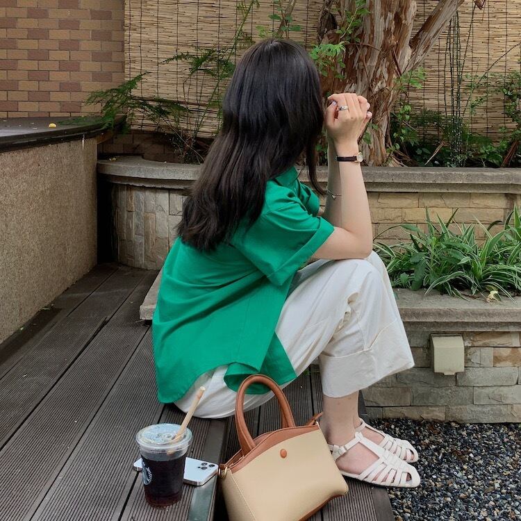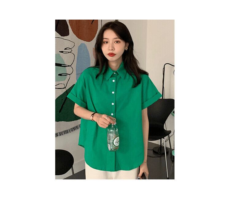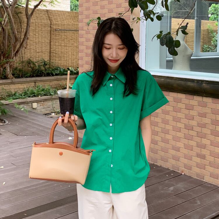 サマーグリーンルーズカラースリーブカジュアルシャツ レディース 夏物 5/3 春夏 SS Neploe mi4660580512649