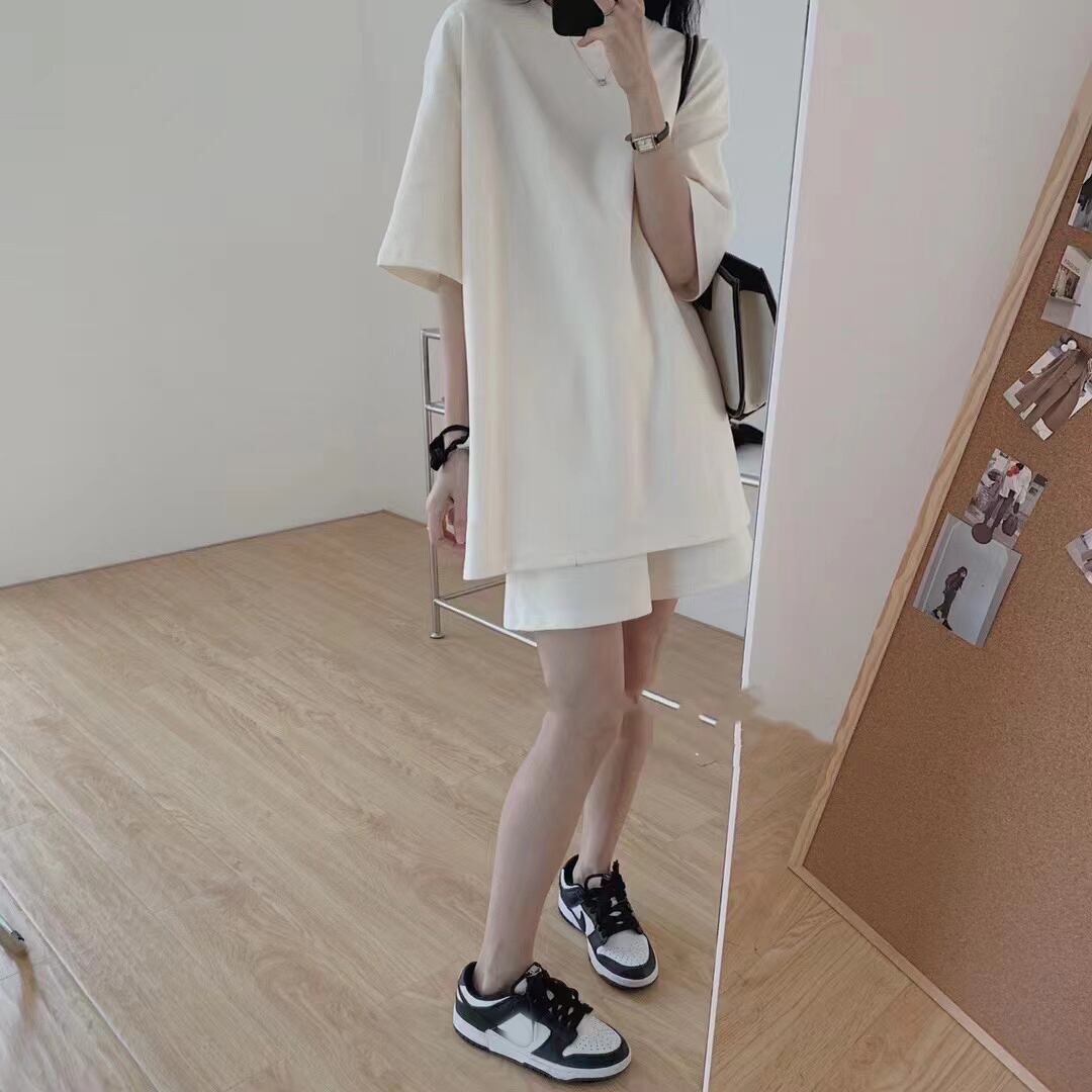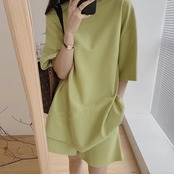 サマーカラーラウンドネックルーズスリーブTシャツ ハイウェストウェスト薄手ショーツ レディース エレガント 夏物 ブルマー Oネック 5/3 春夏 SS Neploe mi4639557411302