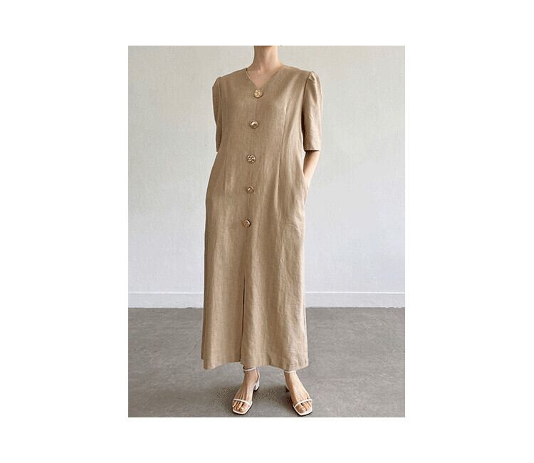 サマーVネックボタンソリッド カラードレス レディース 夏物 ソリッドカラー 5/3 春夏 SS Neploe mi467230624420