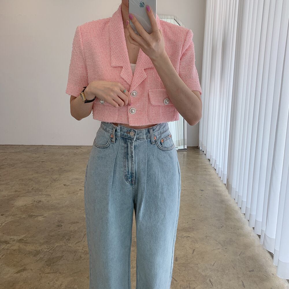スプリングカラールーズダブルポケットショートツィードジャケット レディース 春物 5/3 春夏 SS Neploe mi4650664820491