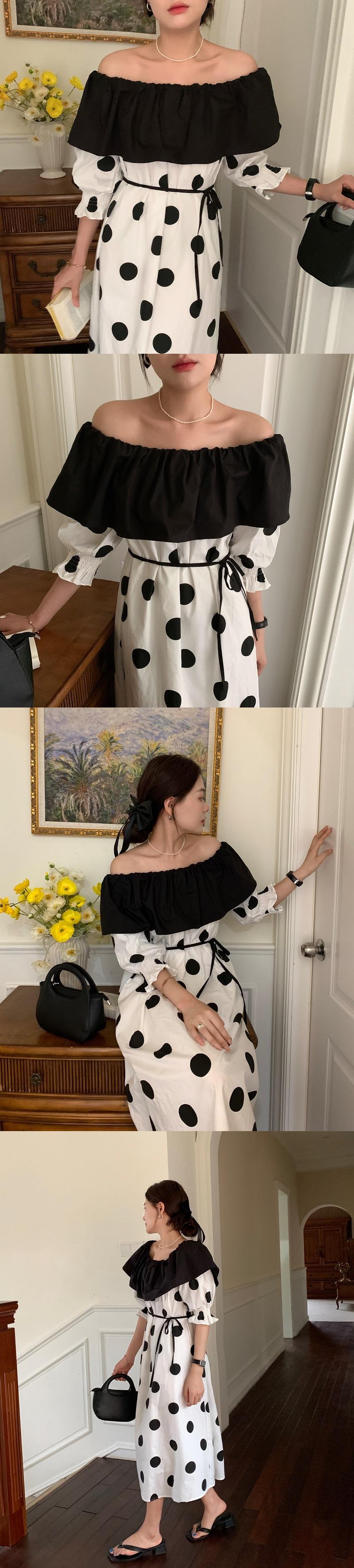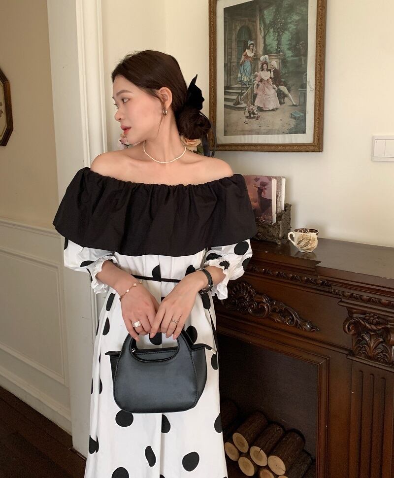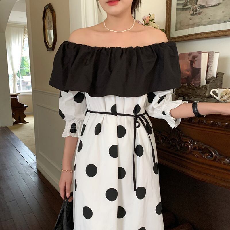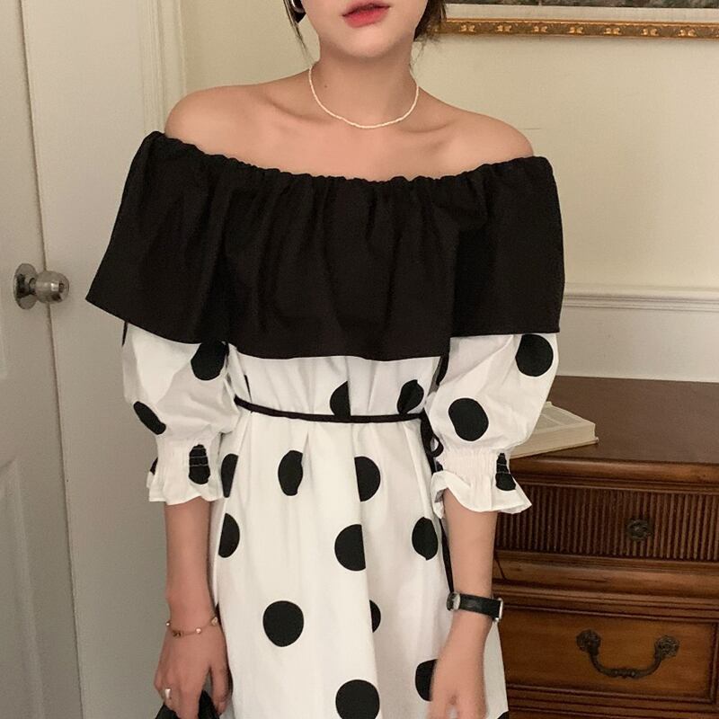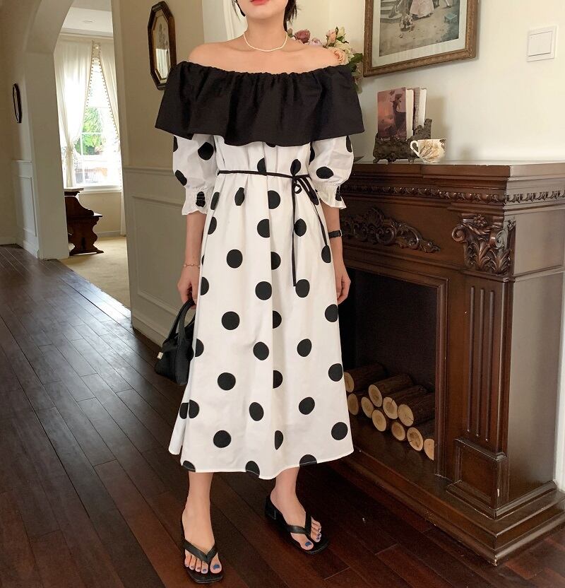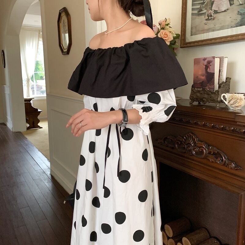 サマーレーススリーブ水玉ドレス ランタンスリーブ 夏物 5/3 春夏 SS Neploe mi4615203761157