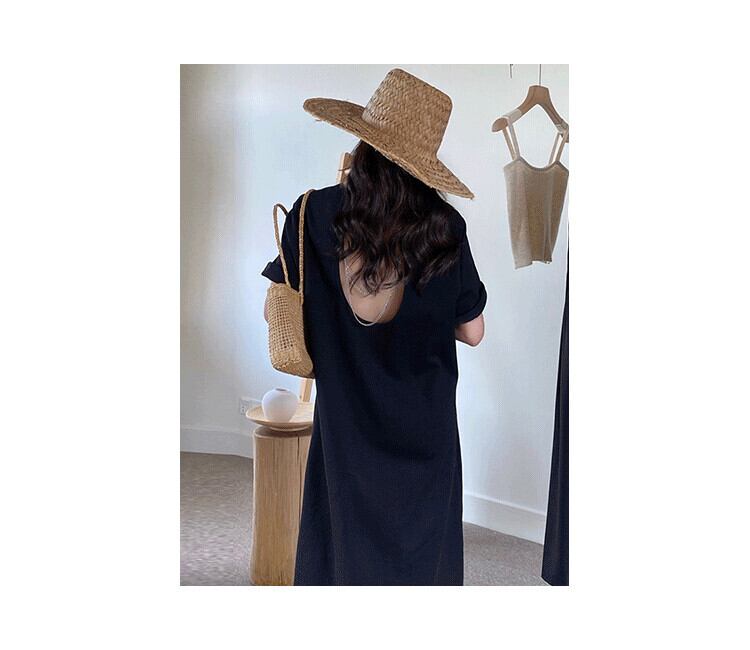 サマーラウンドネックバックチェーン ルーズカジュアルドレス ロングスカート レディース 夏物 Oネック 5/3 春夏 SS Neploe mi4672466800699