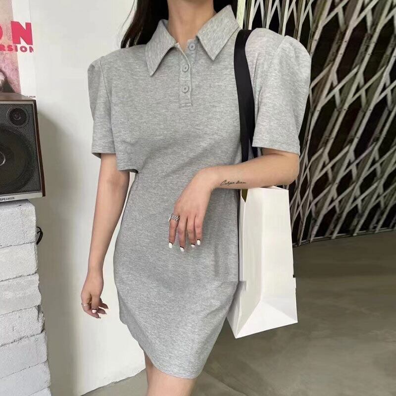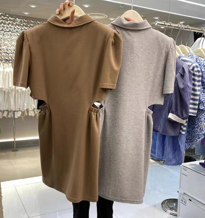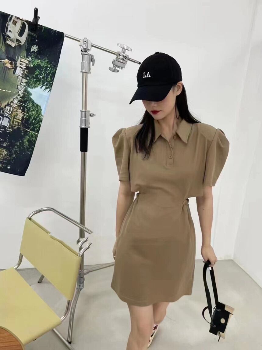 サマースタンダードカラーウェストスリムTシャツ ドレス レトロ 夏物 5/3 春夏 SS Neploe mi4611826976333