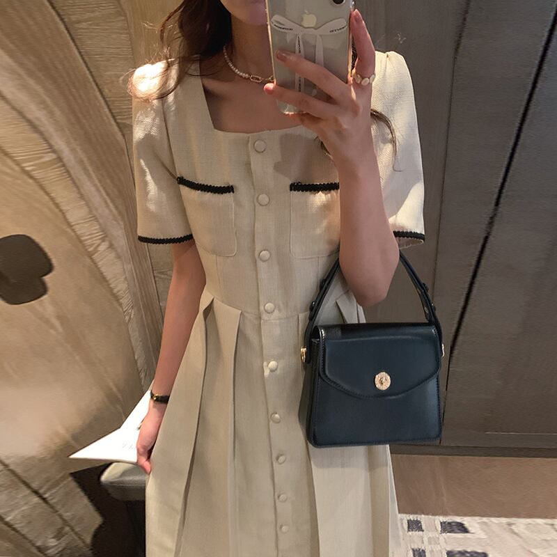 スタンダードカラーウェスト薄手レースドレス レトロ スクウェア 5/3 春夏 SS Neploe mi462952365550