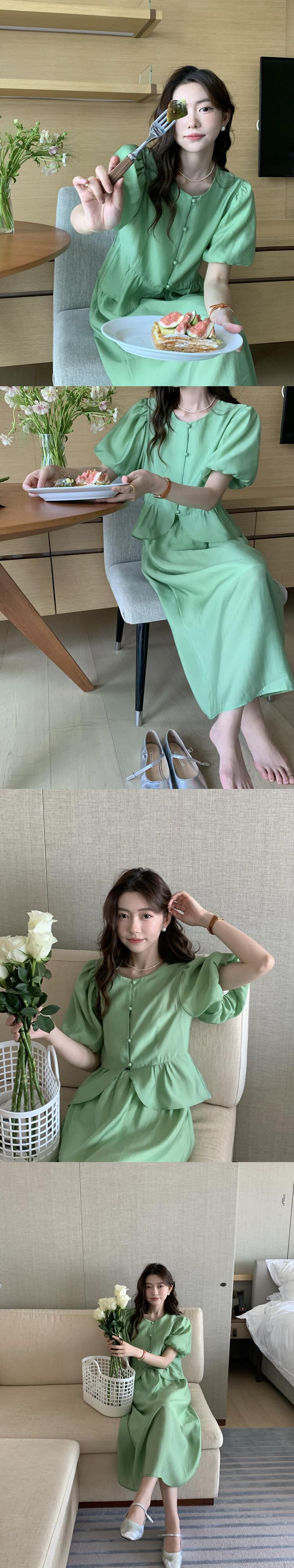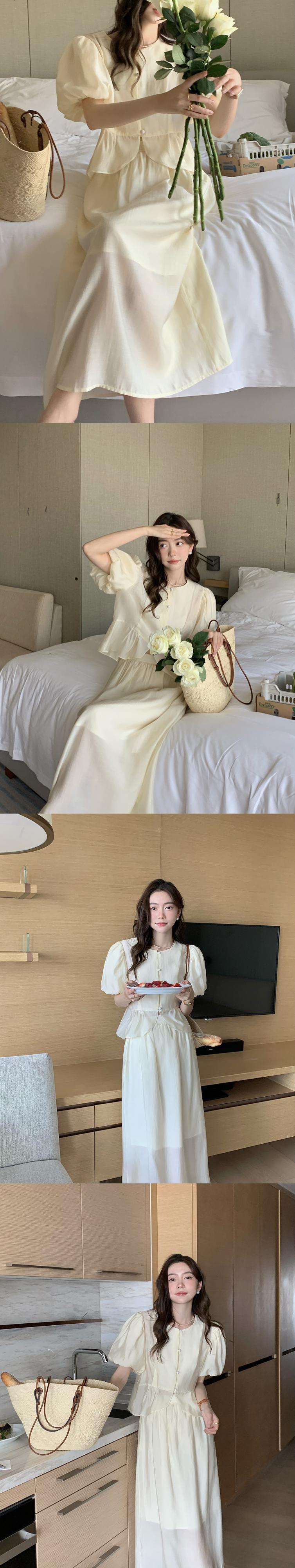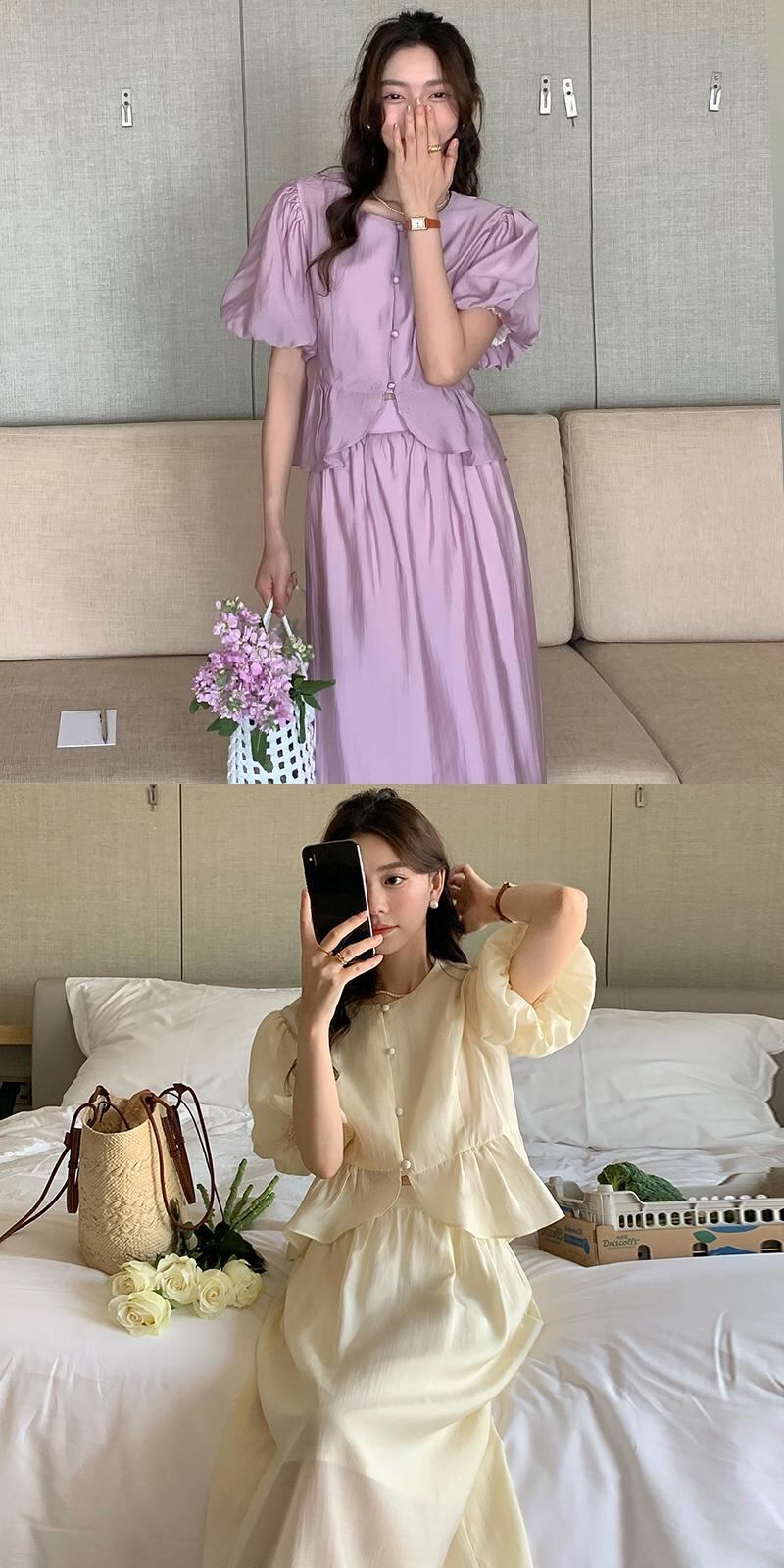 サマースタンダードラウンドネックルーズスリーブシャツ ハイウェストウェストスリムスカート レディース レトロ 夏物 Oネック 5/3 春夏 SS Neploe mi4649548610138