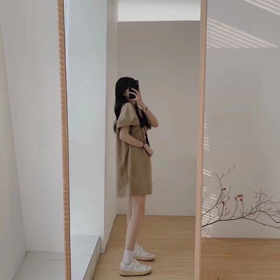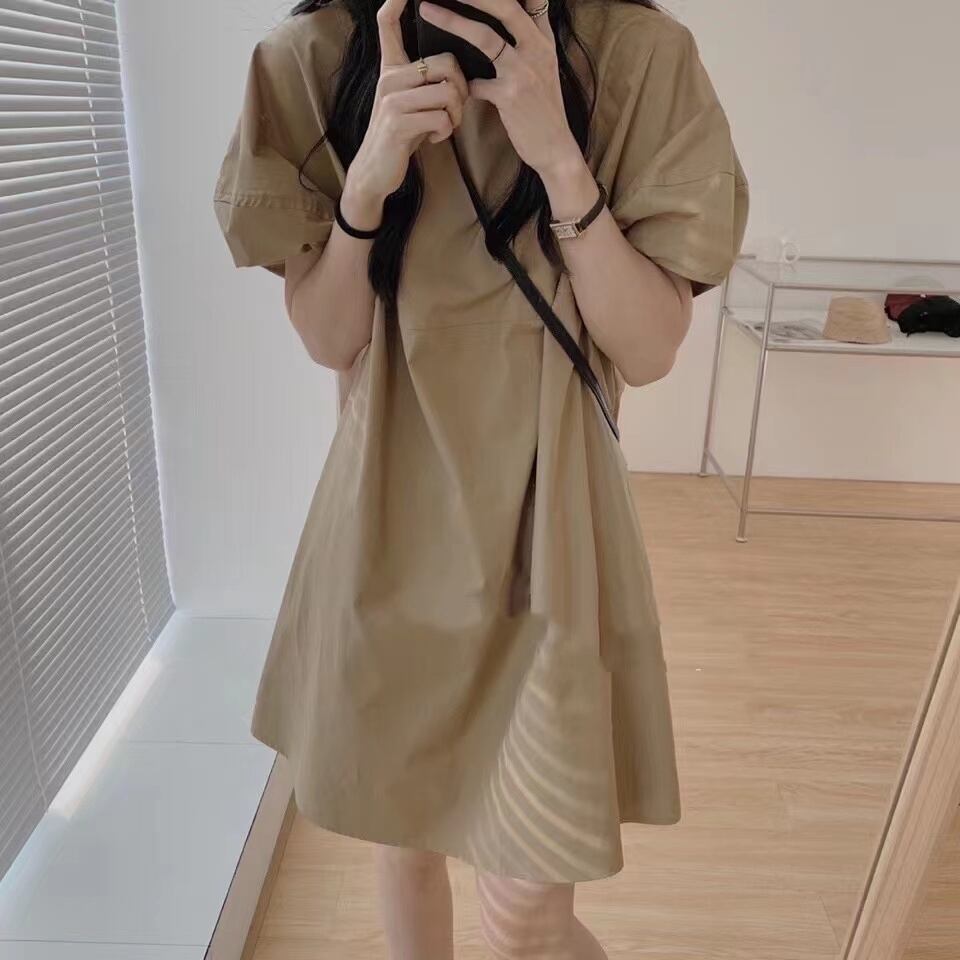 サマーラウンドネックソリッド カラールーズカジュアルスリーブAラインドレス ショートスカート レディース ピンク ランタンスリーブ 夏物 Oネック ソリッドカラー 5/3 春夏 SS Neploe mi463314198035