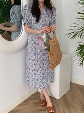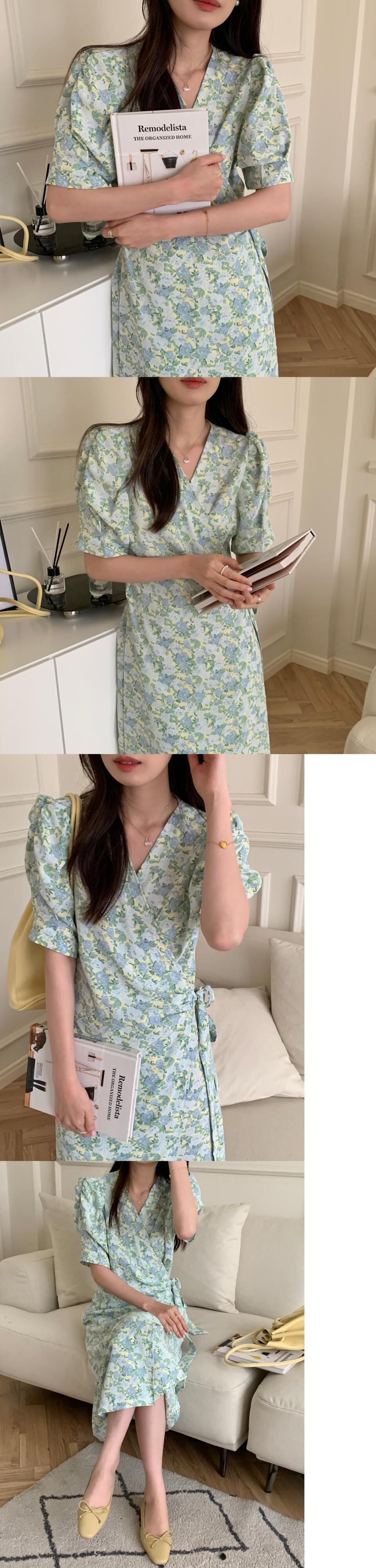 サマークロスVネックウェストワンピースフローラルスリーブドレス 夏物 花柄 5/3 春夏 SS Neploe mi4635392439578