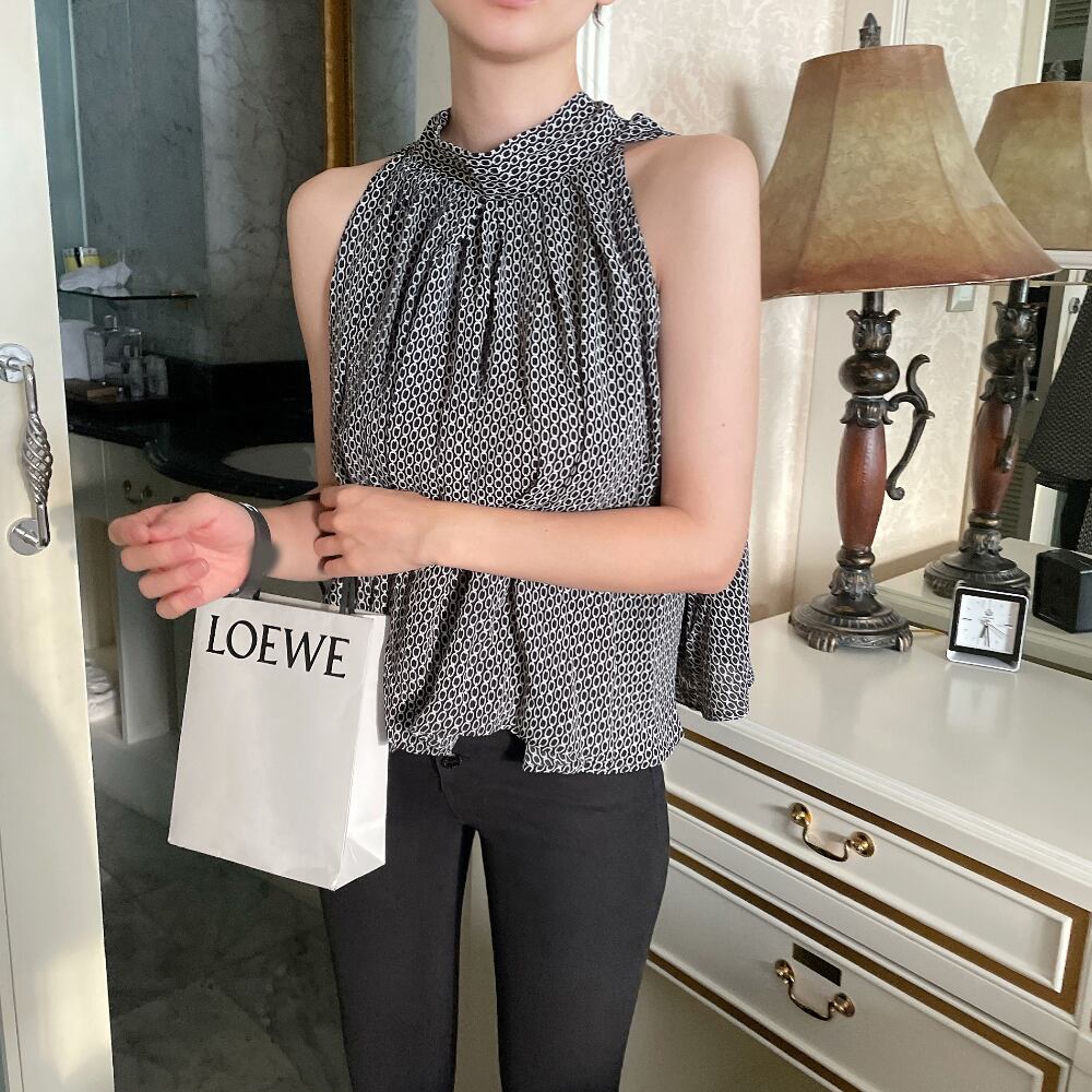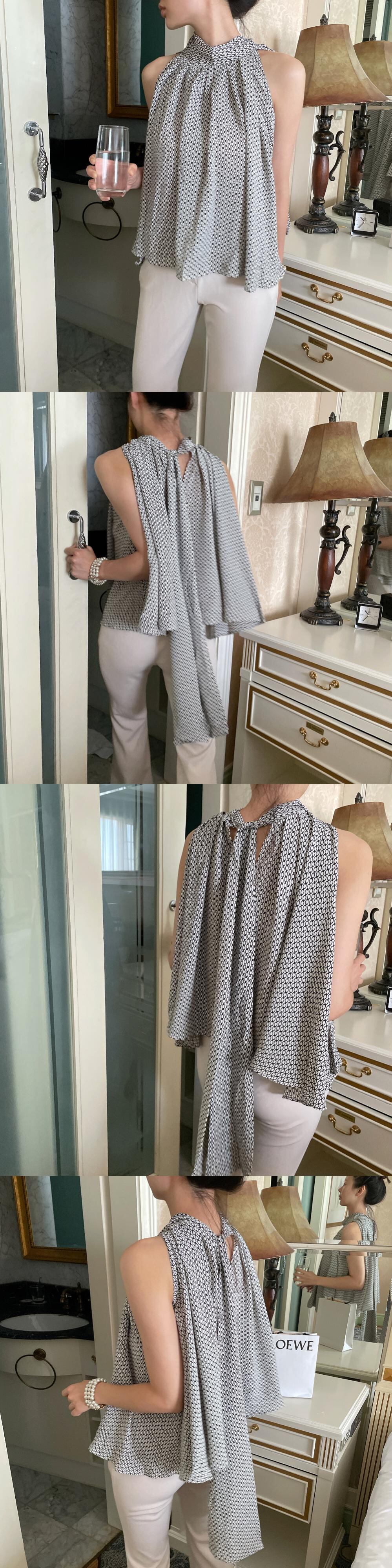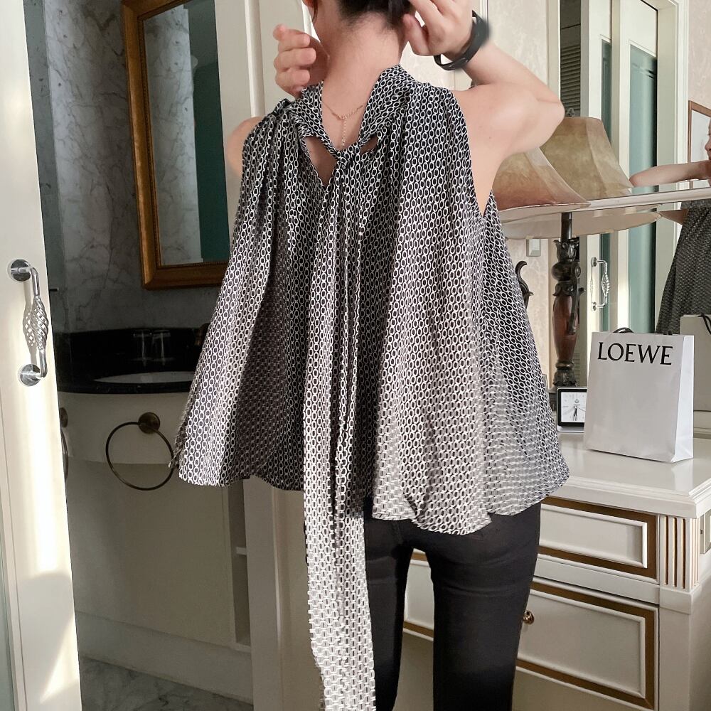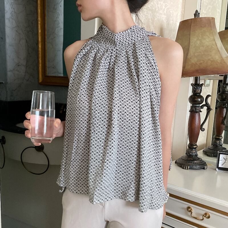 サマースタンダードスタンドカラーカラーバックストラップ ルーズノースリーブトップス レディース レトロ 夏物 5/3 春夏 SS Neploe mi4665873080945