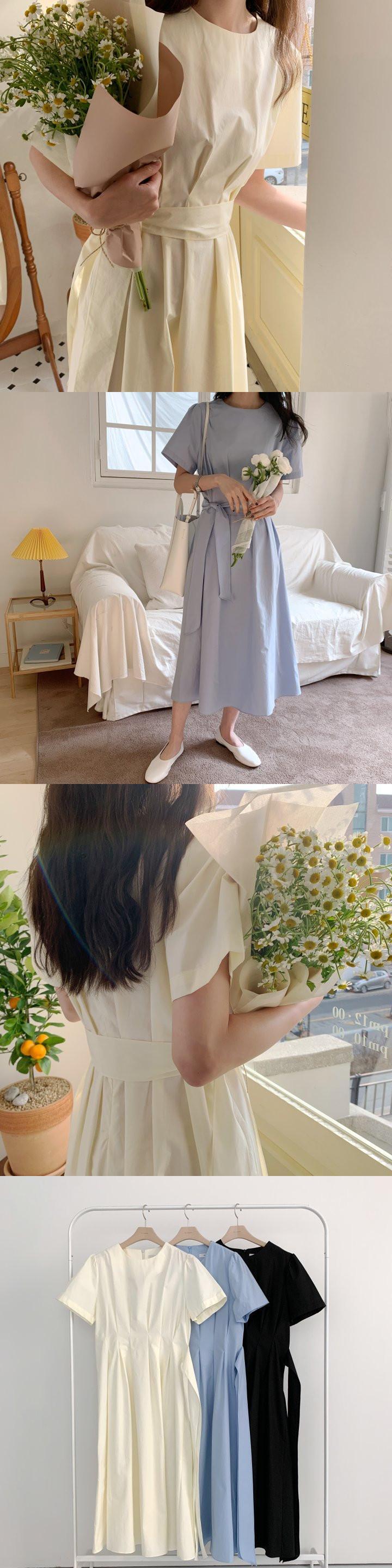 サマーラウンドネックプリーツウェストソリッド カラードレス ロングスカート 夏物 Oネック ソリッドカラー 5/3 春夏 SS Neploe mi4684391243388