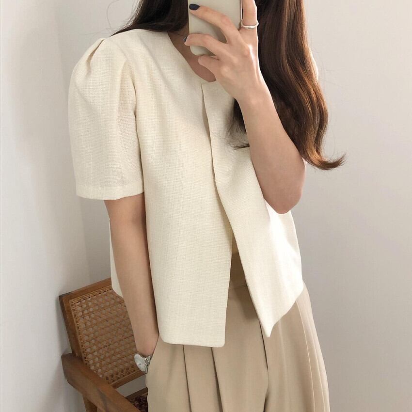 スプリングスタンダードラウンドネックルーズショートカーディガンジャケット レディース レトロ 春物 Oネック 5/3 春夏 SS Neploe mi4662775677428