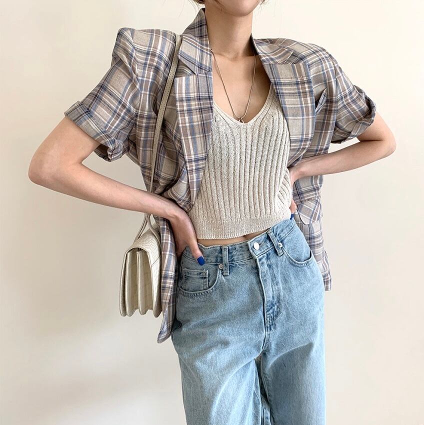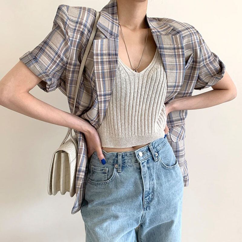 サマースタンダードカラールーズボタンポケット格子柄シャツ ジャケット レトロ 夏物 5/3 春夏 SS Neploe mi4672788494084