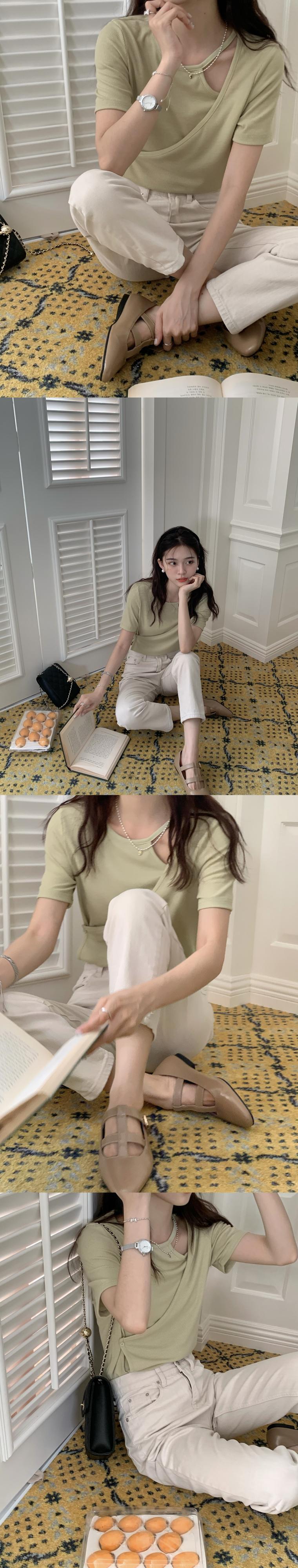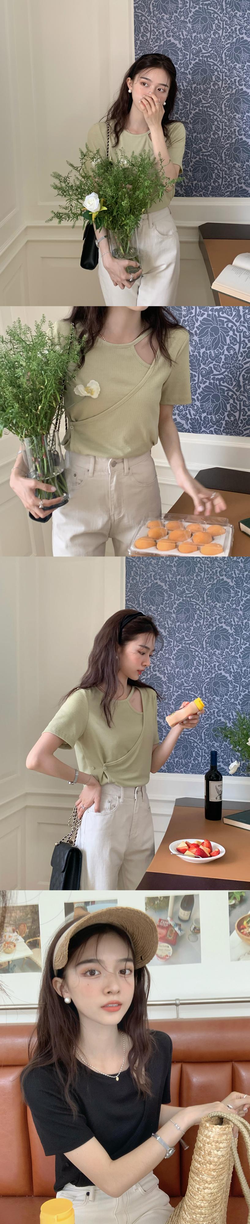 サマーラウンドネックボタンTシャツ トップス 夏物 Oネック 5/3 春夏 SS Neploe mi4656171952553