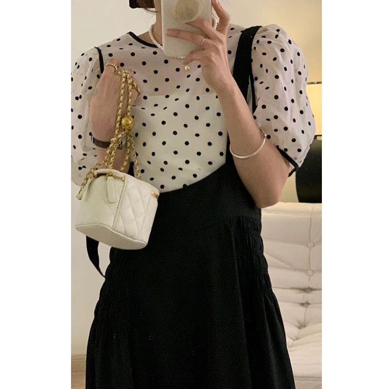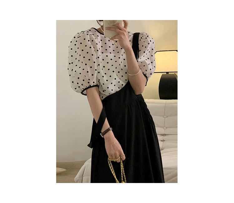 サマーラウンドネックスリーブ水玉シャツ ウェストロングドレス 夏物 Oネック 長めのストラップ 5/3 春夏 SS Neploe mi4679148141062