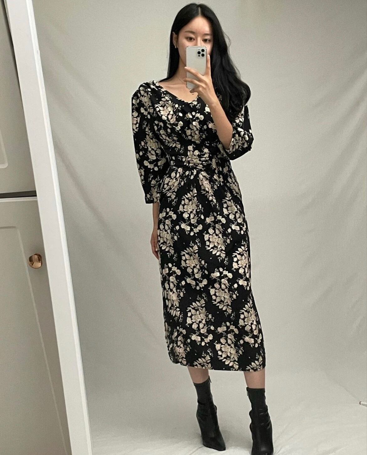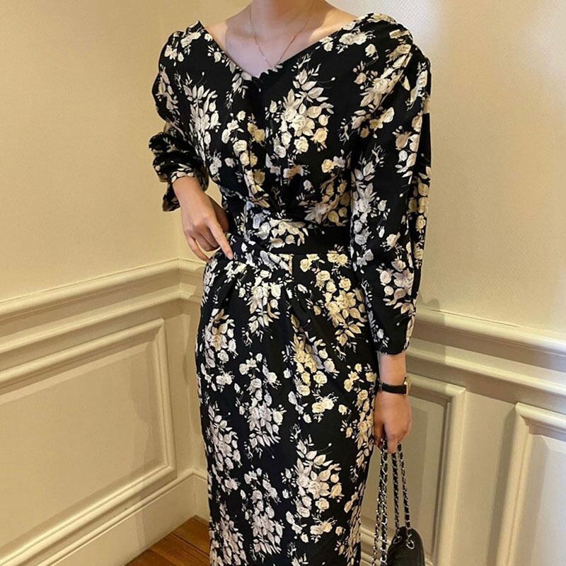 スプリングVネックカラーFlowerデザイン ウェスト薄手ドレス レディース 春物 フラワーデザイン 5/3 春夏 SS Neploe mi4667826037599