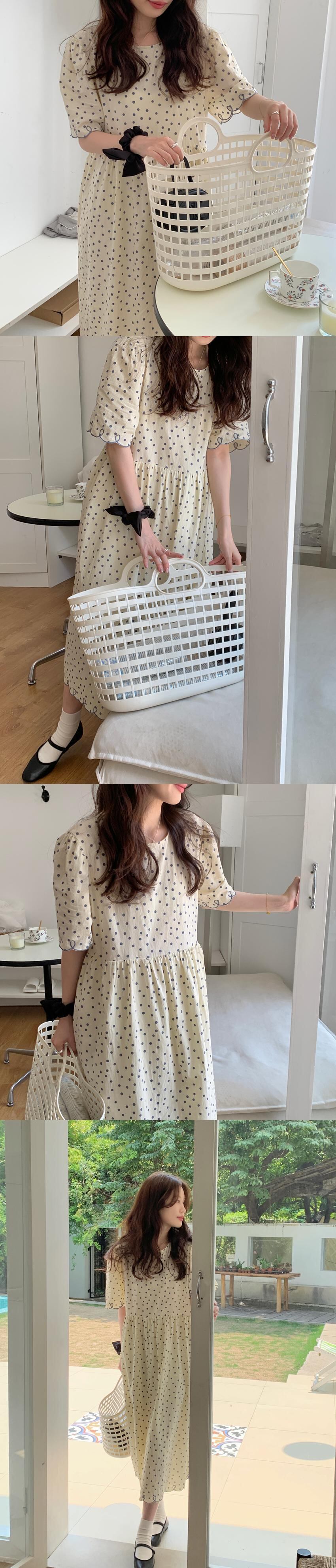 サマースタンダードラウンドネックロングドレス レトロ 夏物 Oネック ステッチ 5/3 春夏 SS Neploe mi466001876401