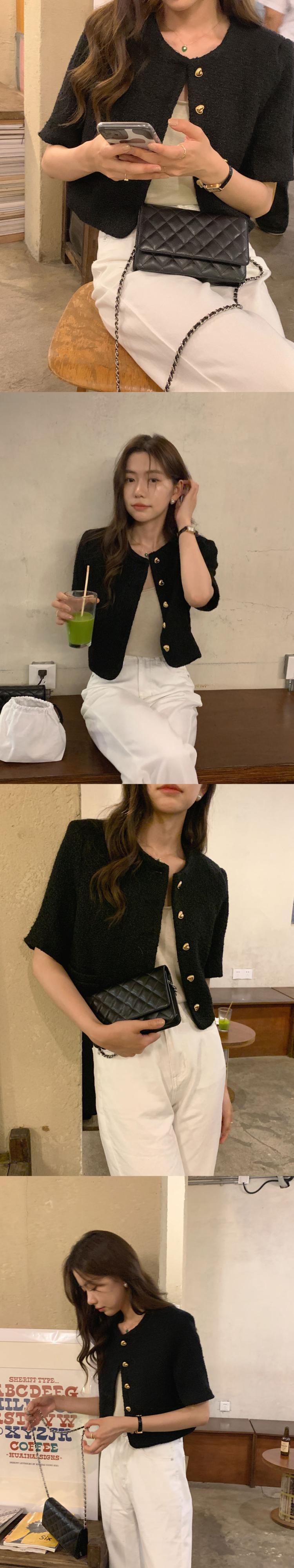 サマーラウンドネックメタルツィードショートジャケット トップス レディース 夏物 Oネック 5/3 春夏 SS Neploe mi466101006174