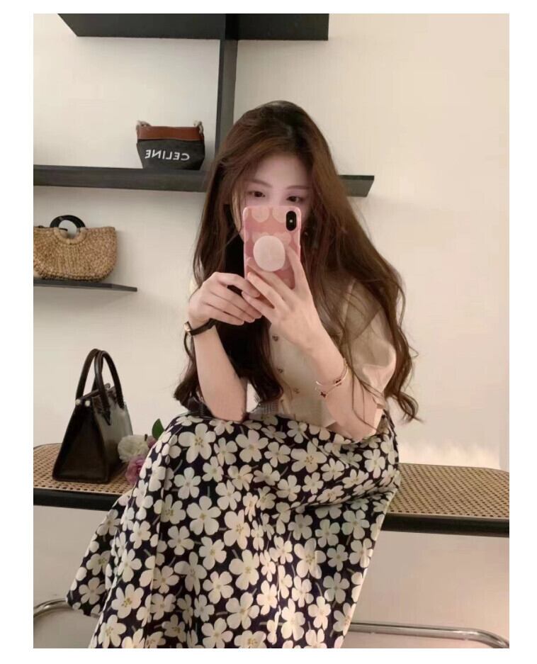 サマーVネックルーズジャケット ハイウェストウェスト薄手フローラルスカート レディース エレガント 夏物 花柄 5/3 春夏 SS Neploe mi4667670836986
