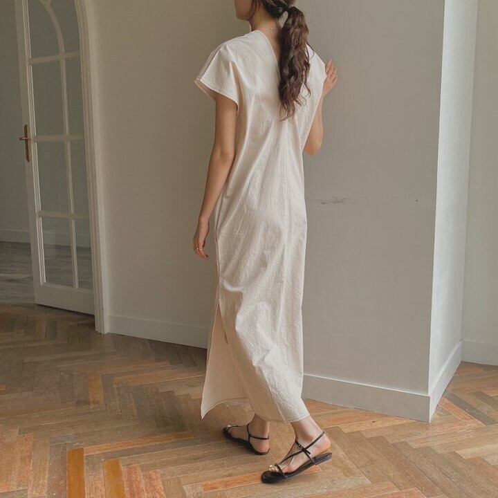 Vネックラインルーズカジュアルスリットドレス ロングスカート 5/3 春夏 SS Neploe mi4670729619752