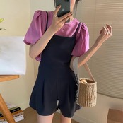 サマーラウンドネックバックスリーブシャツ ハイウェストウェスト薄手ショーツ 大人ガーリー スウィート キュート カジュアル 夏物 ブルマー Oネック 5/3 春夏 SS Neploe mi4687364626909