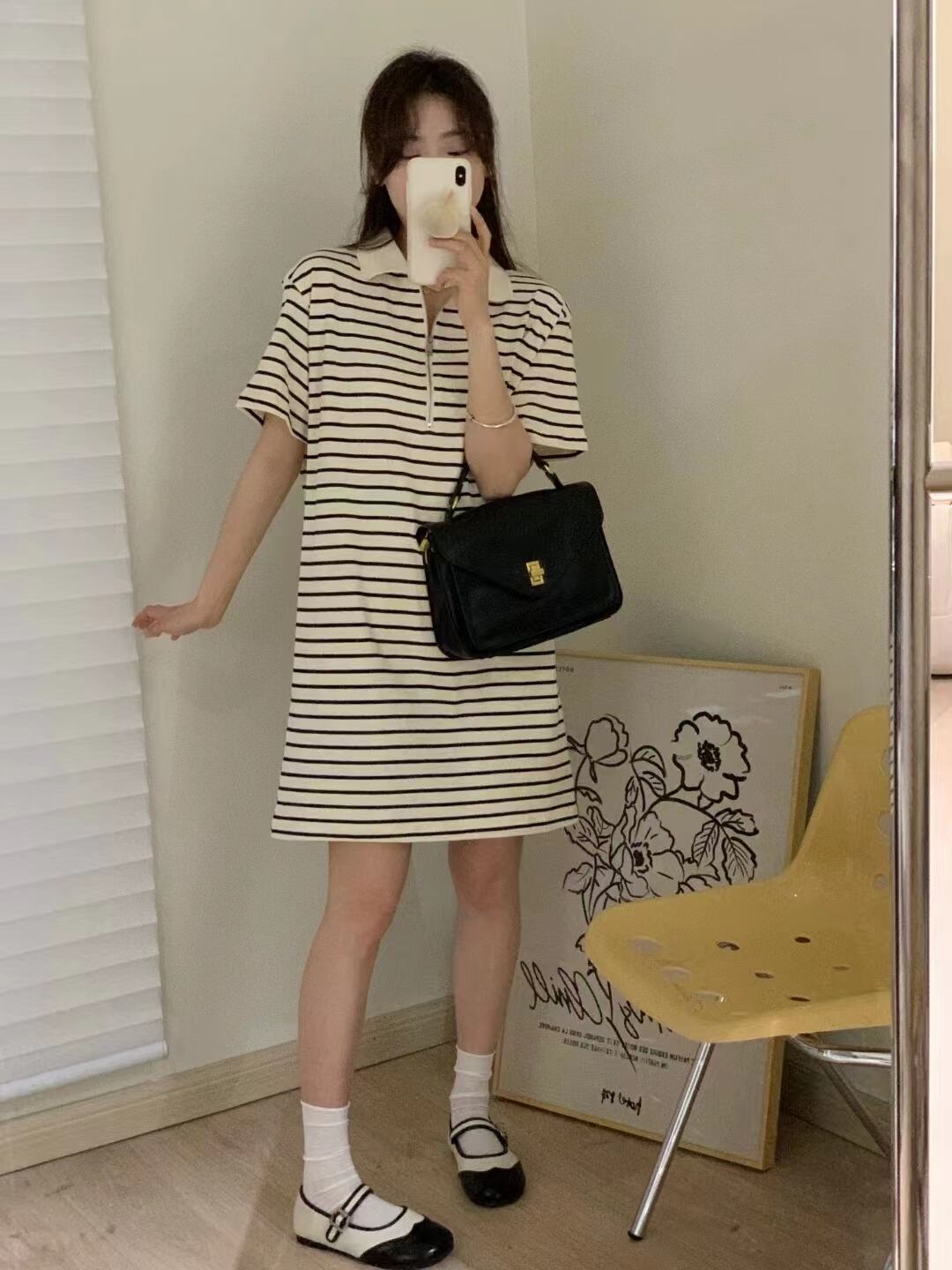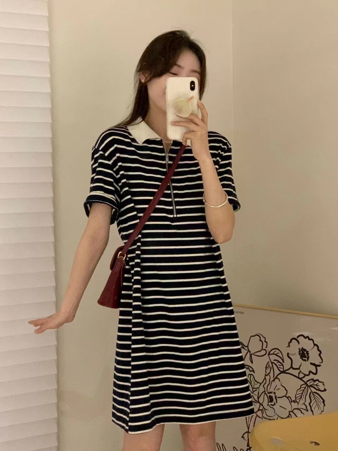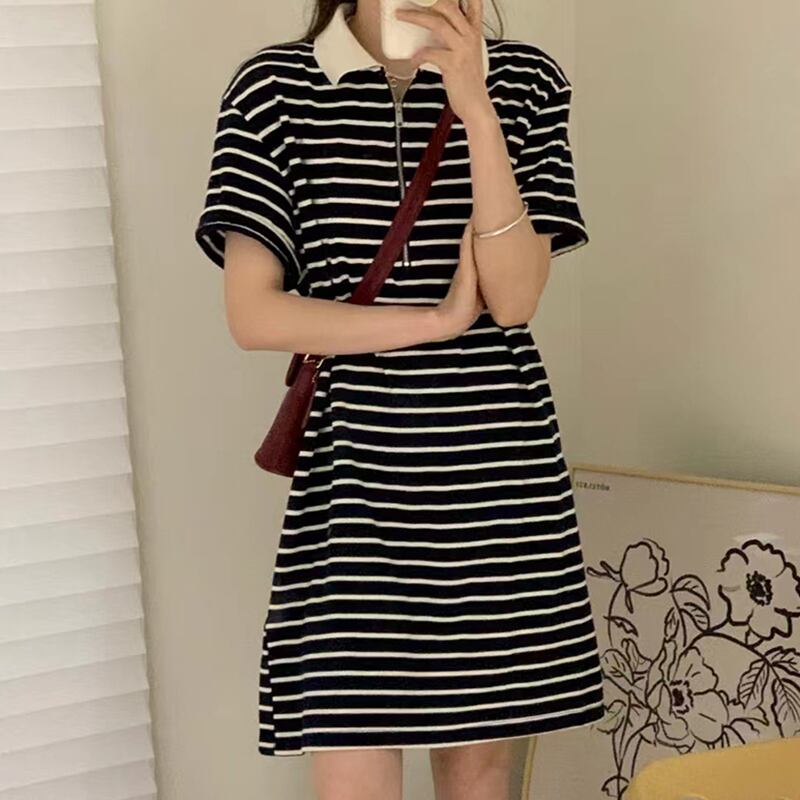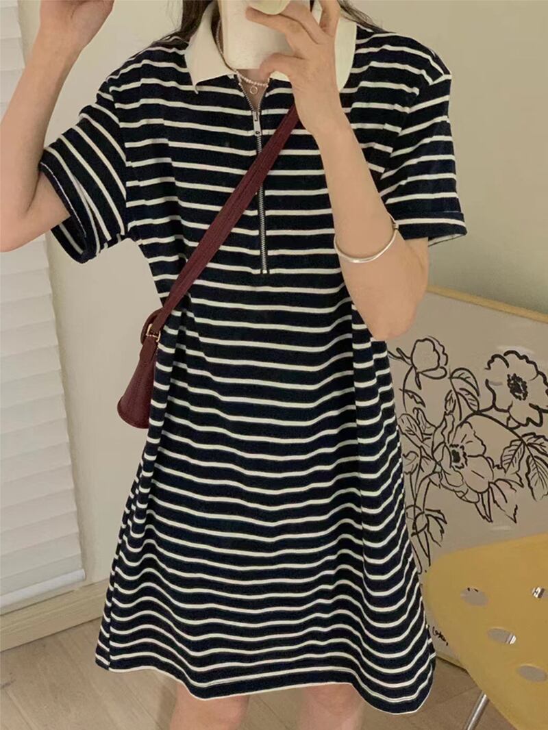サマーカラージッパールーズカジュアルストライプドレス レディース 夏物 5/3 春夏 SS Neploe mi4640637923694