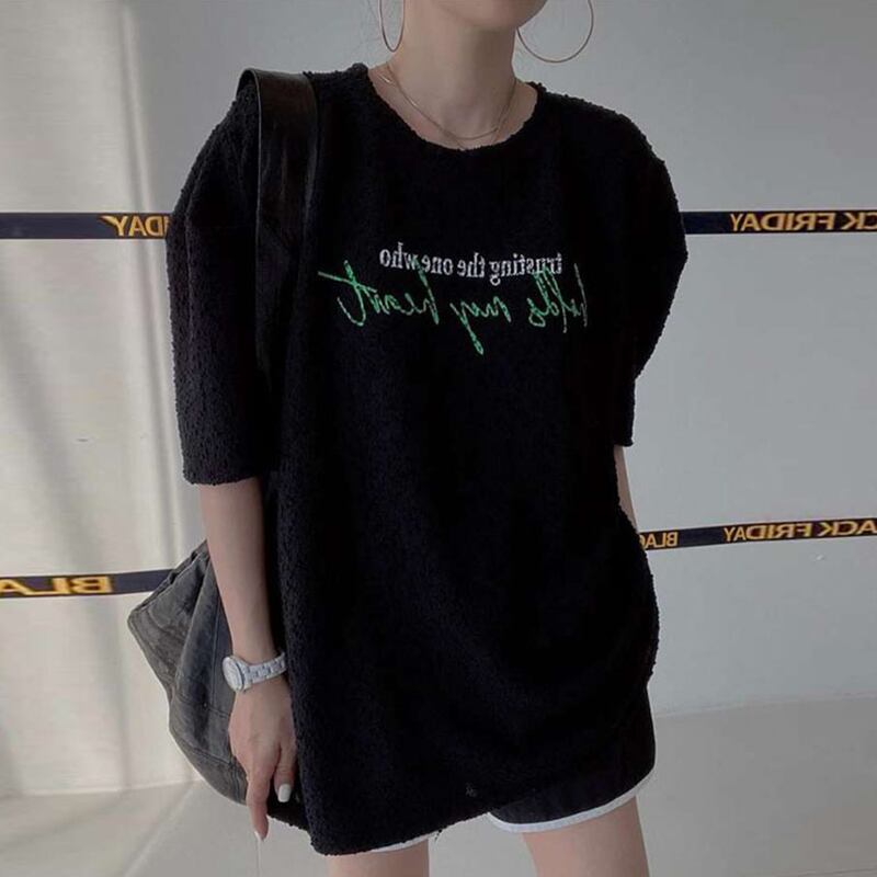 サマーラウンドネックプリントルーズ水玉スリーブTシャツ レディース 夏物 Oネック 5/3 春夏 SS Neploe mi467513260274