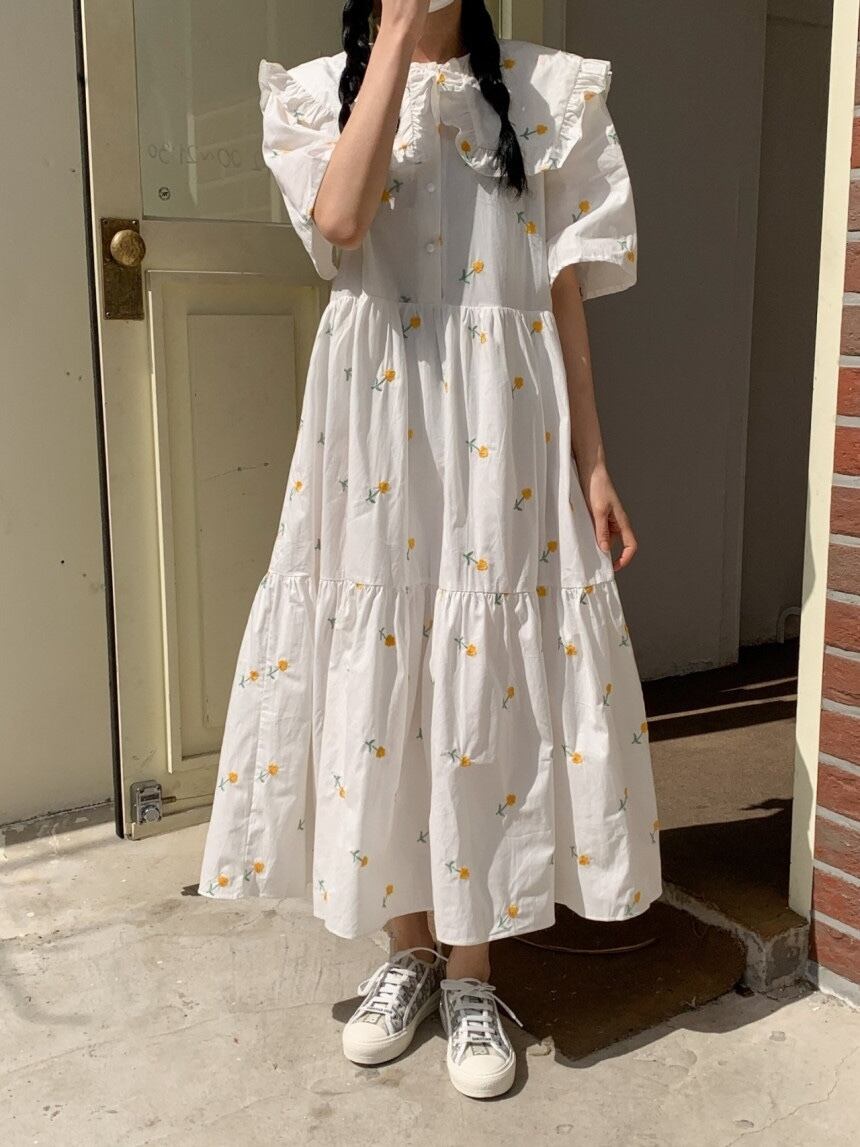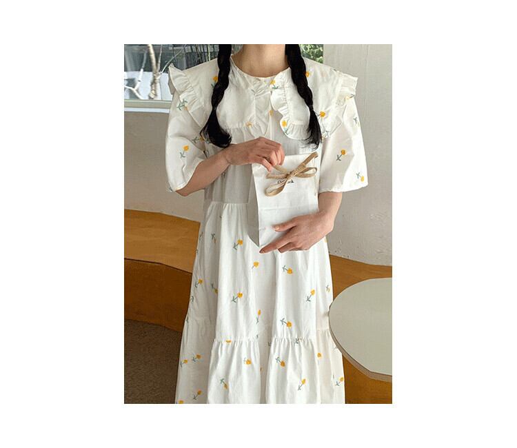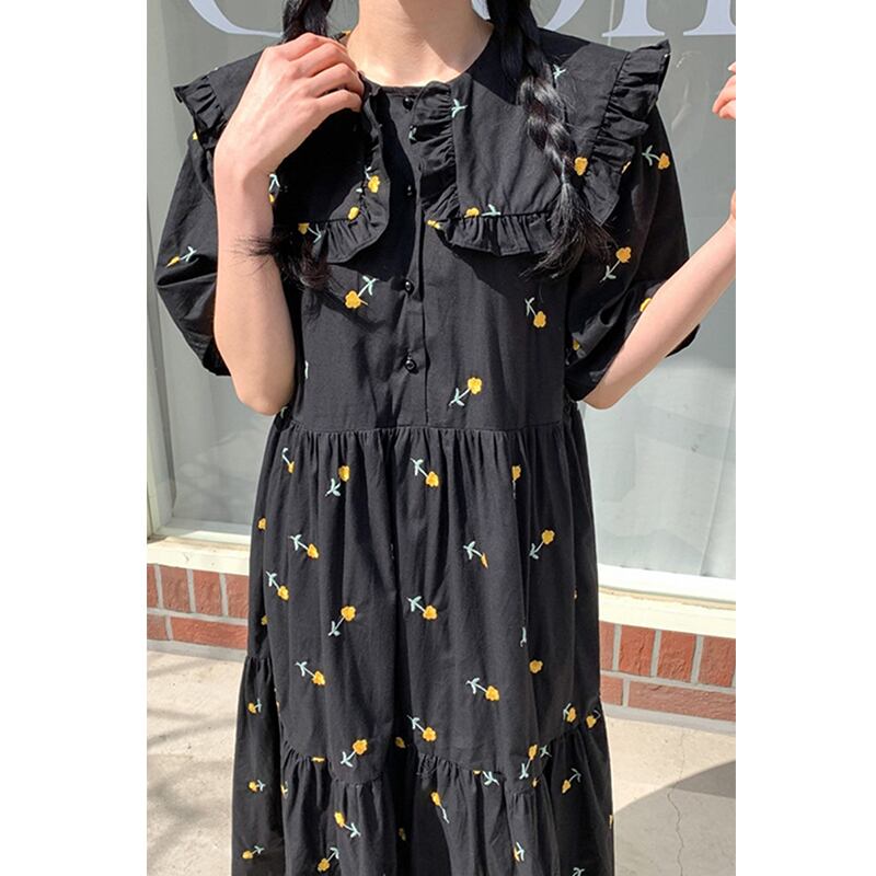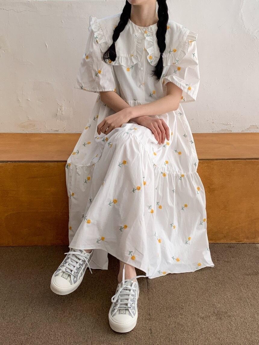 スプリングフローラルカラールーズドレス レディース レッド 刺繍 大人ガーリー スウィート キュート カジュアル 春物 花柄 5/3 春夏 SS Neploe mi4633758218956